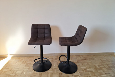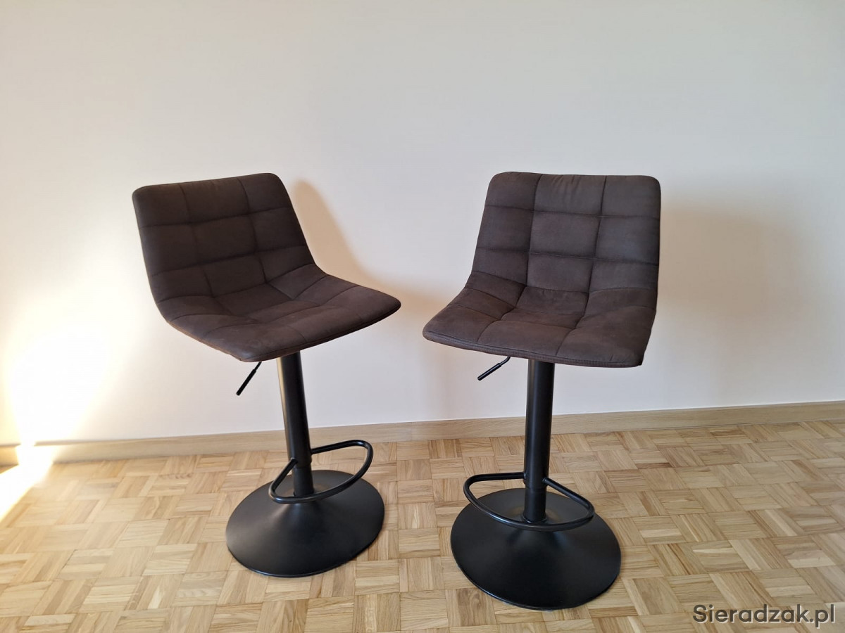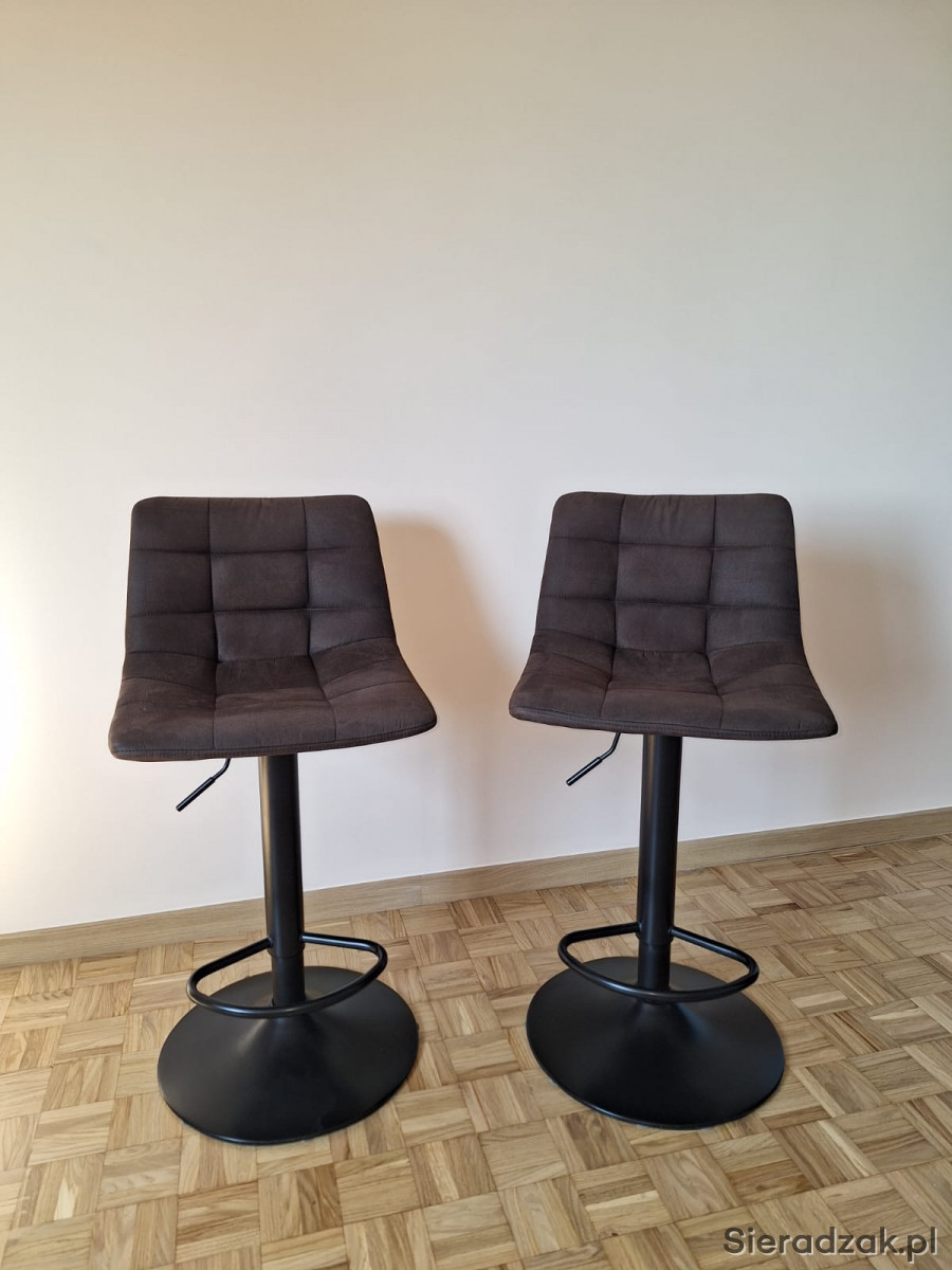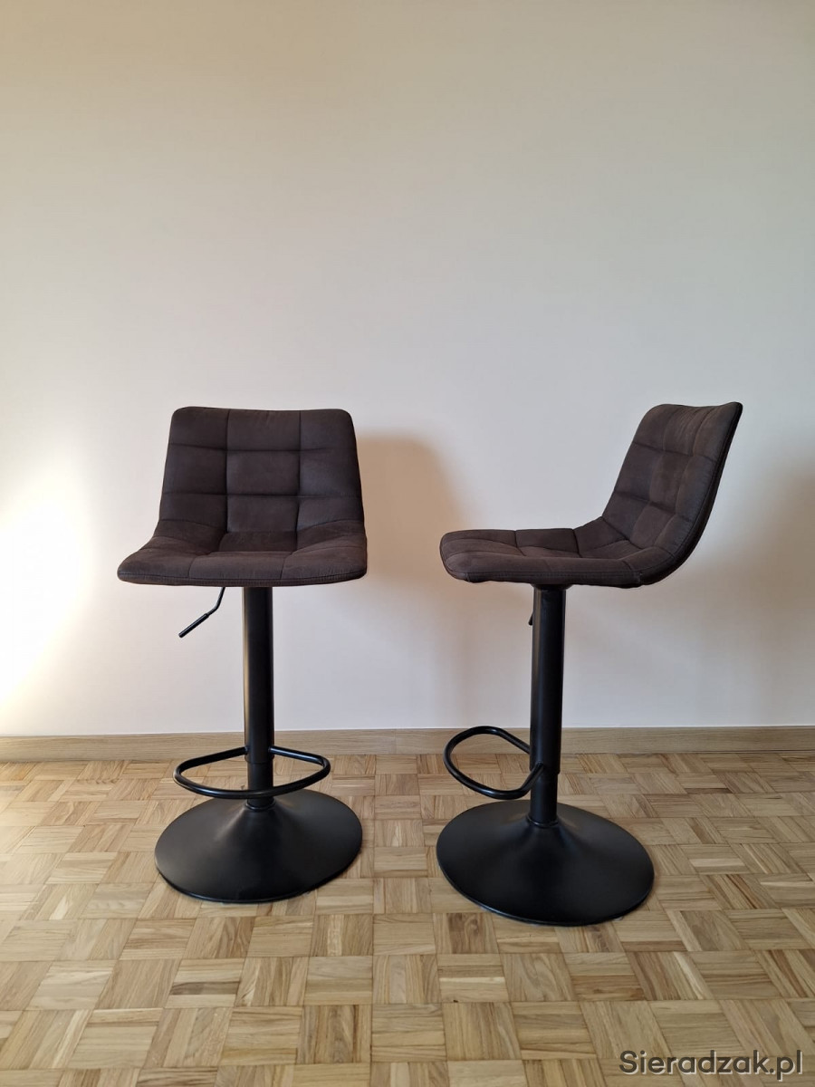 Mam na sprzedaż Hokery Kirme w kolorze ciemnobrązowe w ilości 2 szt., stan bardzo dobry. Hokery posiadają wygodne w obsłudze podnośniki, które umożliwiają płynną regulację wysokości, 63-83 cm. Tapicerka wykonana została z mikrofibry, dzięki czemu jest odporna na uszkodzenia i łatwa w utrzymaniu czystości.