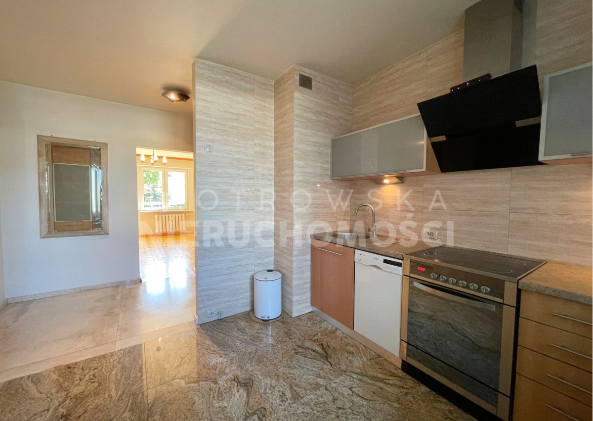 Duża, ustawna i praktycznie urządzona, po remoncie – na wyposażeniu pozostaje kompletna zabudowa kuchenna wraz z lodówką, zmywarką, kuchnią elektryczną z piekarnikiem oraz okapem. Podłoga wykończona płytkami wielkoformatowymi imitującymi naturalne drewno.