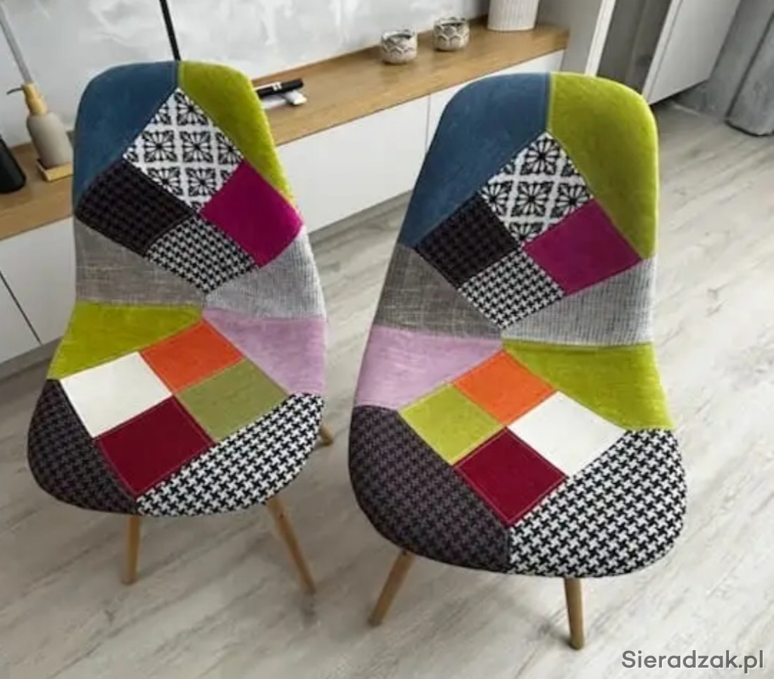 Sprzedam krzesła kolorowe, patchworkowe w nowoczesnym stylu. Wykonane z wysokiej jakości materiałów, zapewniają wygodę i styl. Idealne do uzupełnienia aranżacji wnętrza w stylu skandynawskim.Krzesła są praktycznie nowe bez jakichkolwiek śladów użytkowania.Cena za sztukę 150zl.Posiadam 4 sztuki.