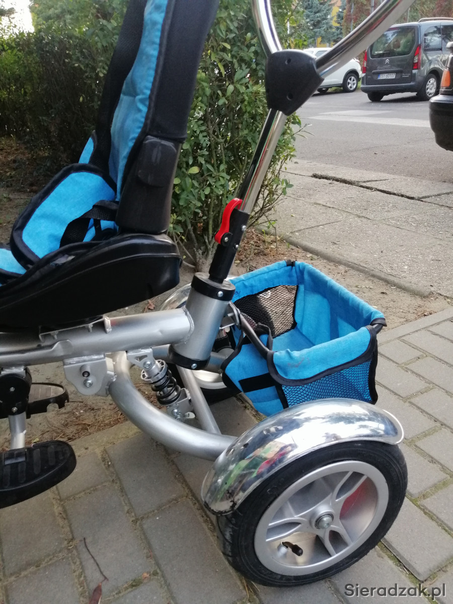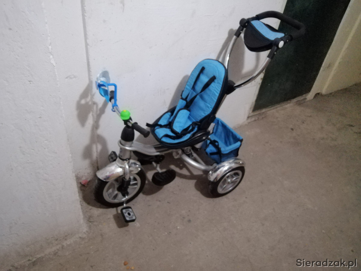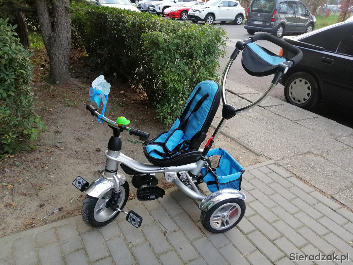 Sprzedam rowerek dziecięcy trójkołowy. Kolor srebrny stan bardzo dobry. Odpinana tylna kierownica. Za pomocą kierownicy z tyłu można skręcać kołem z przodu. Hamulec z tyłu, amortyzator pod siedzeniem. Fajny i wygodny dla dziecka. Odbiór osobisty w sieradzu. Proszę o kontakt SMS na numer telefonu 533 235 669. Cena do negocjacji na miejscu , Pozdrawiam.