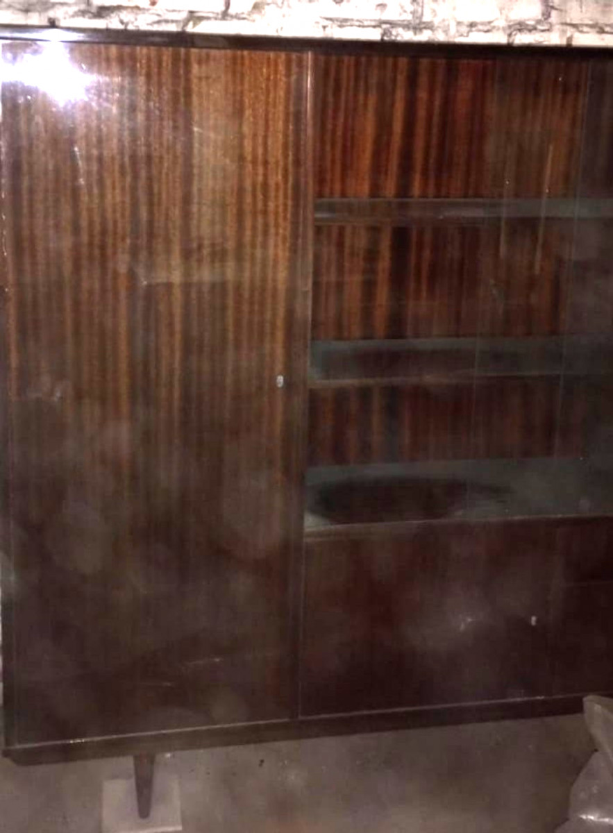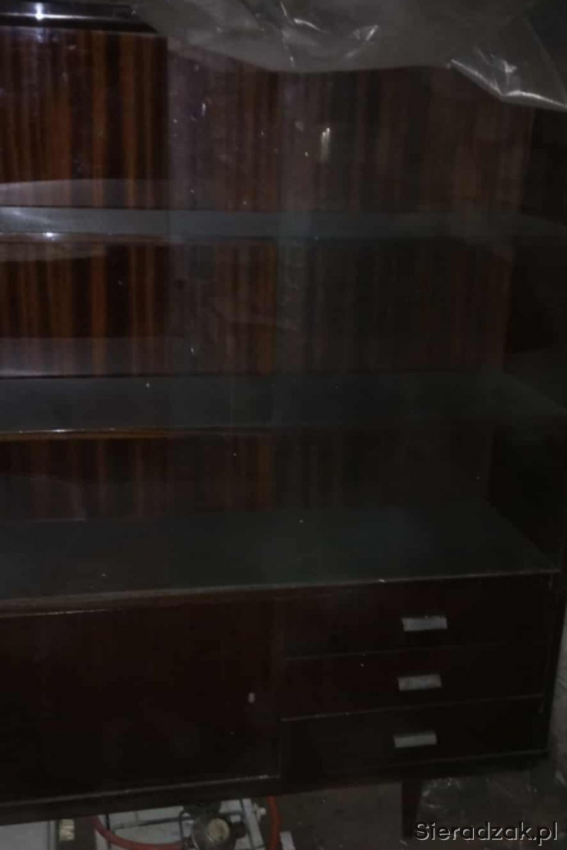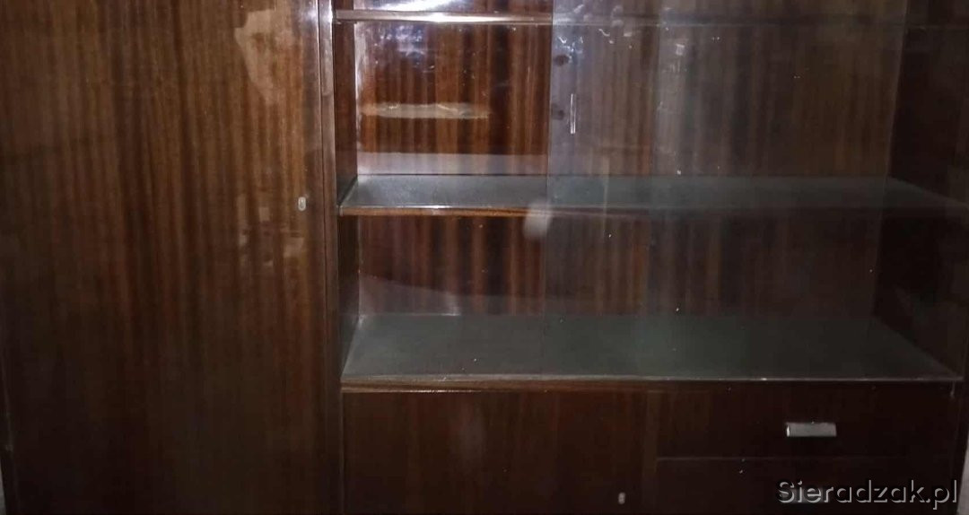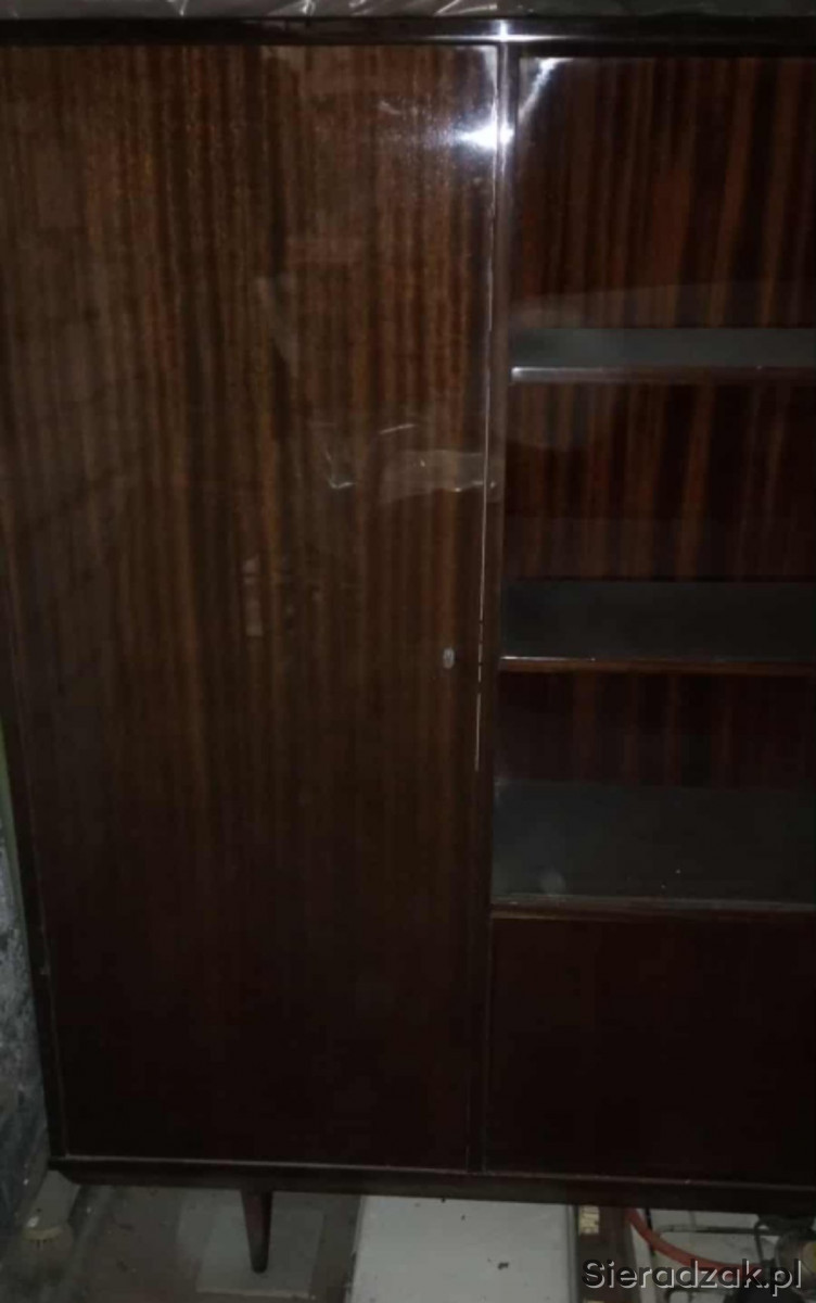 Sprzedam kredens z czasów PRL na nóżkach. Kolor brązowy z wysokim połyskiem. Cena do ustalenia.