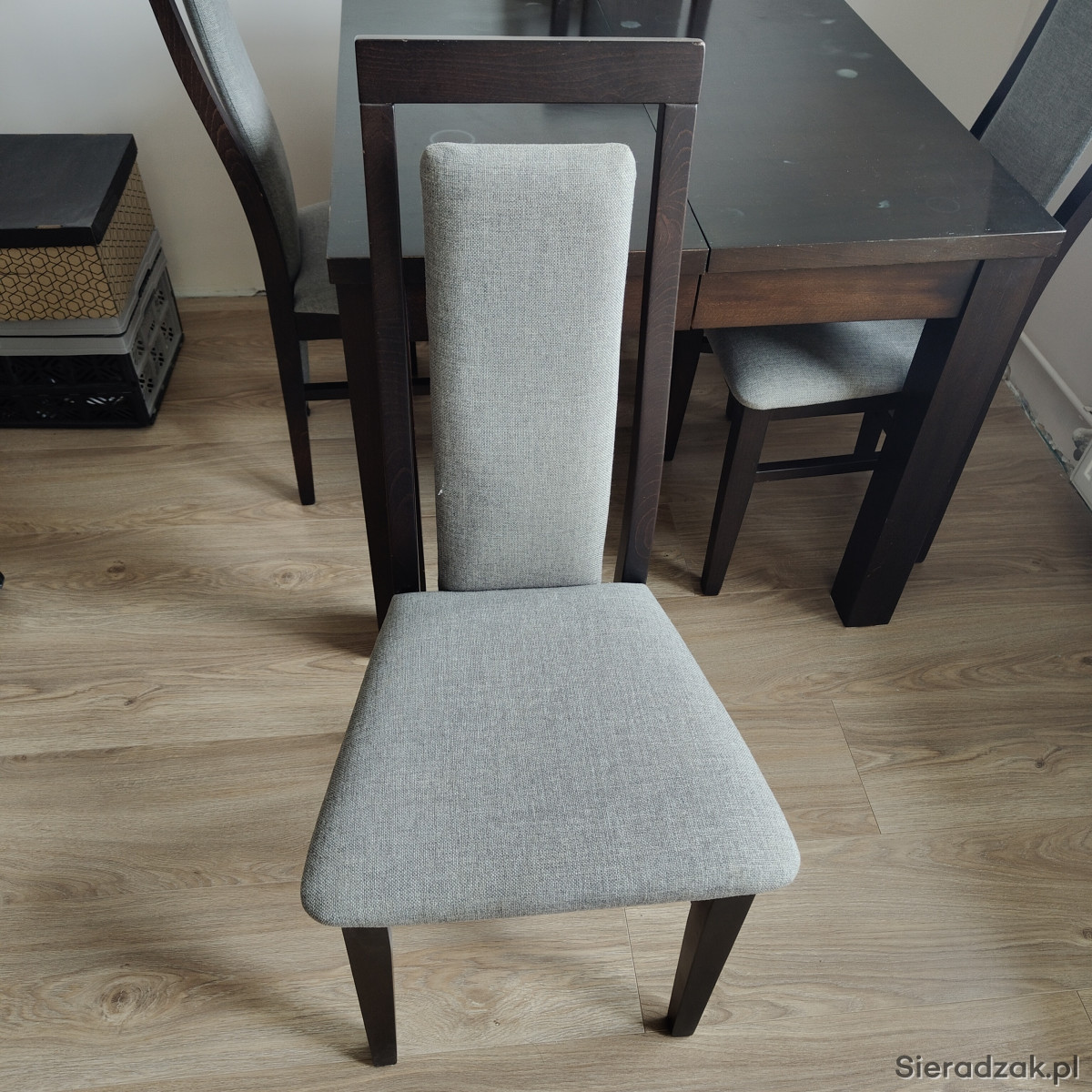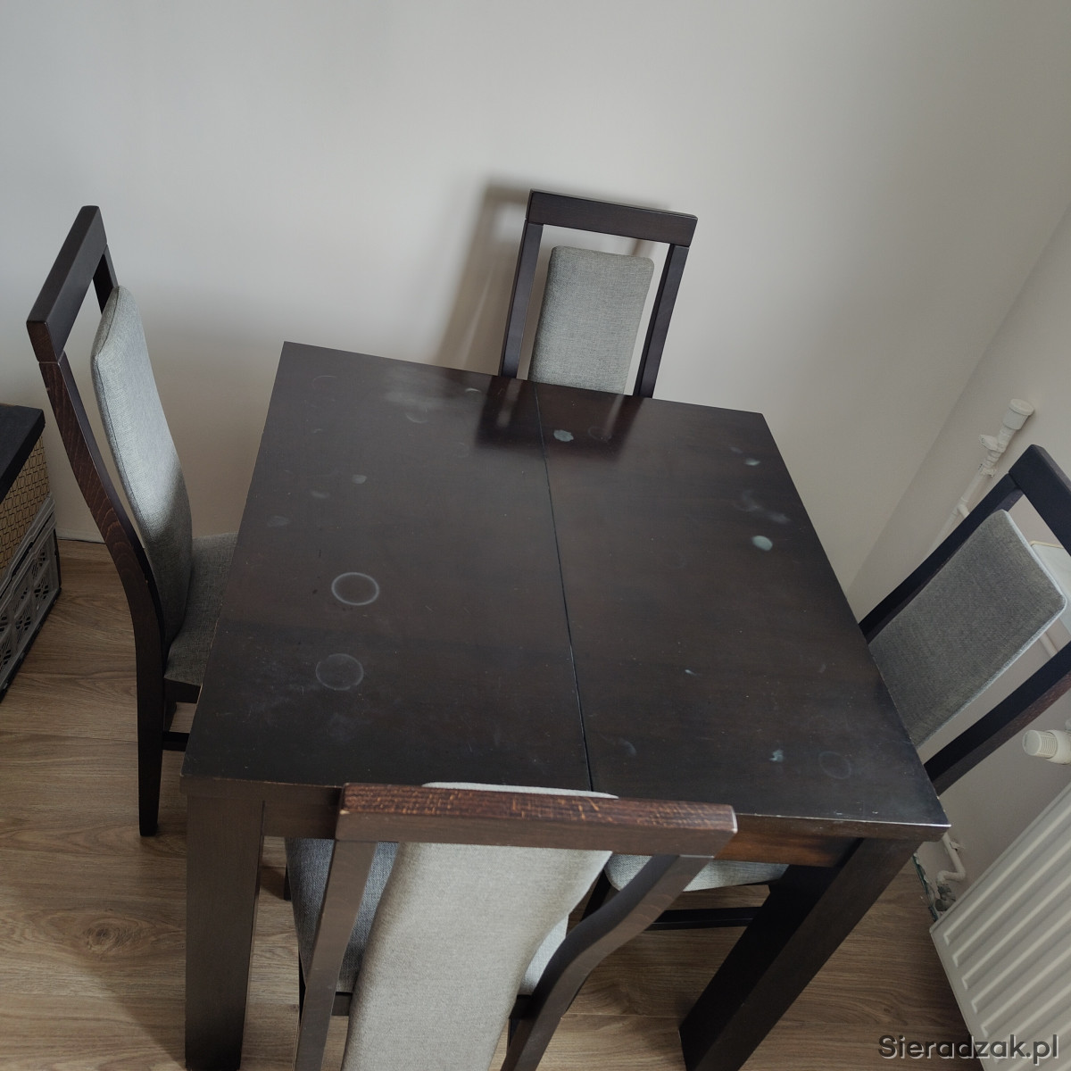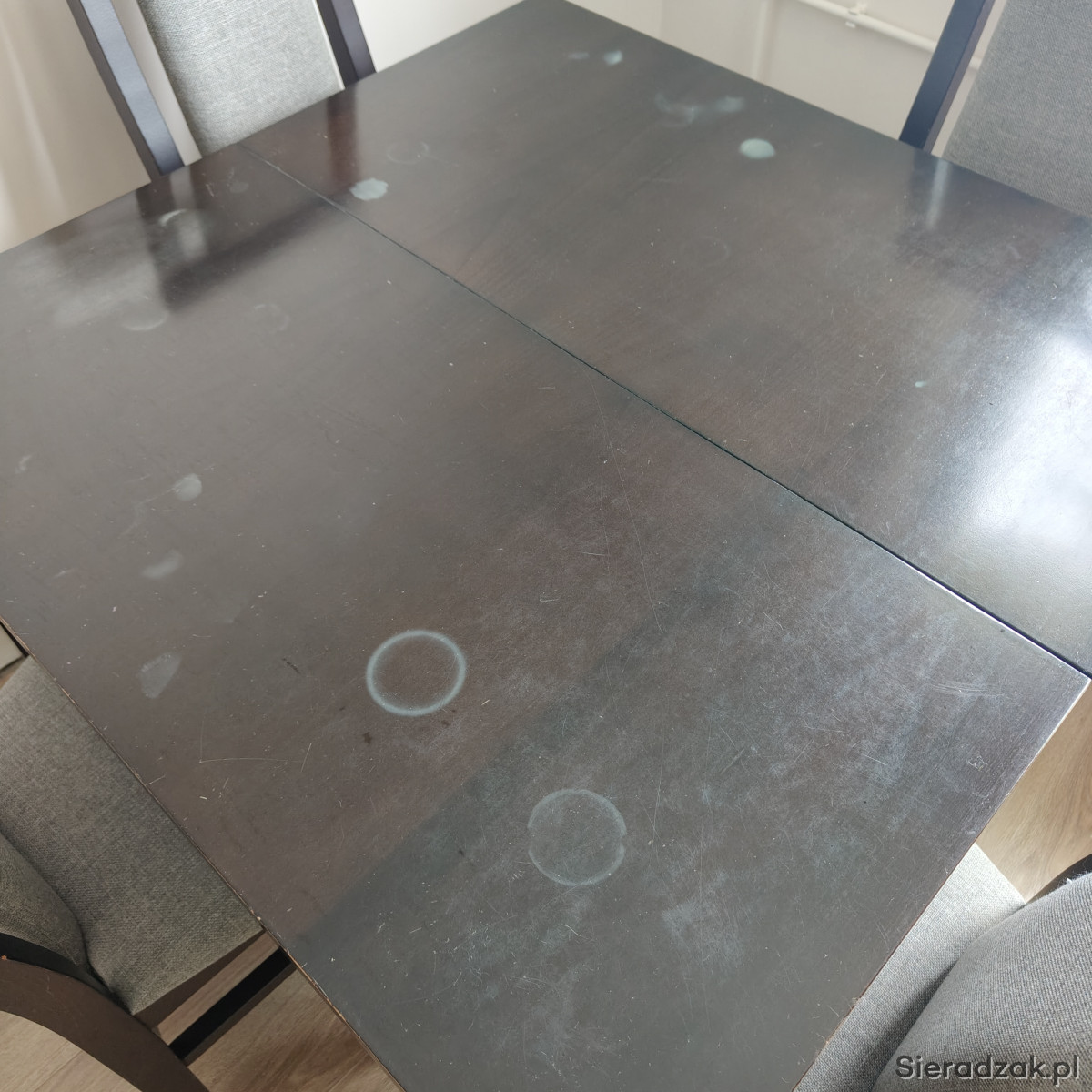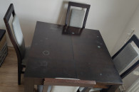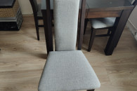 Do sprzedania rozkładany drewniany stół+ 6 krzeseł. Minimalna wielkość stołu to 90cm x 90cm x 77cm. Stół dodatkowo posiada 4 przekładki o szerokości 50cm co daje maksymalną długość 290cm. W skład zestawu wchodzi również 6szt drewnianych krzeseł. Meble te posiadają ślady użytkowania, które po spolerowaniu bądź pomalowaniu nie będą widoczne.
