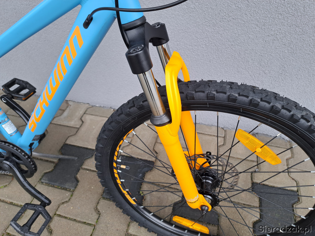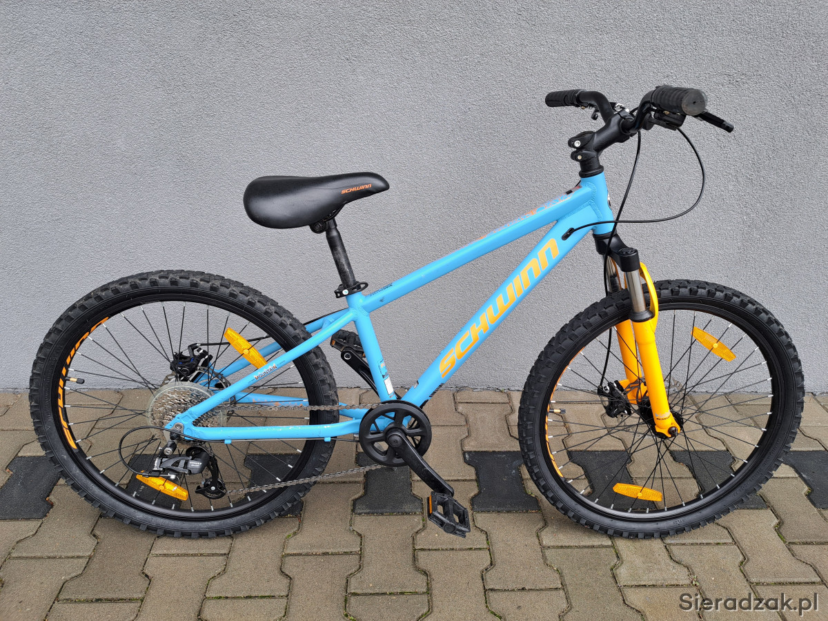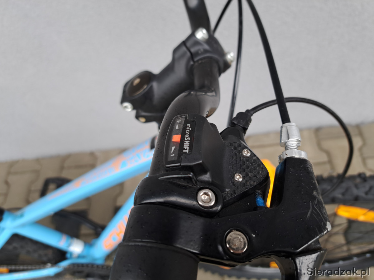 rower na kole 24" rama aluminium 12.5" przerzutki microshift,napęd 1x9,manetka microshift,hamulce tarczowe,siodełko schwinn,amortyzator schwinn.stan bardzo dobry.