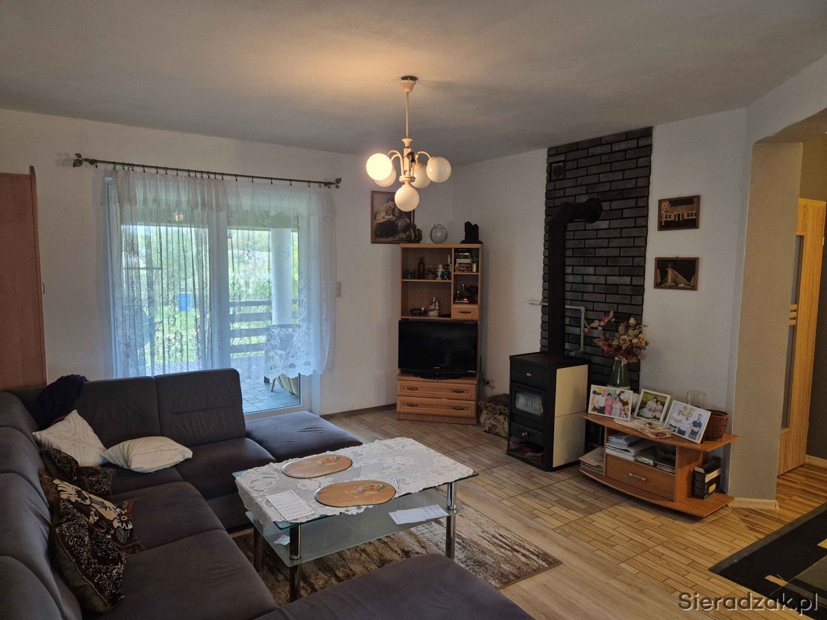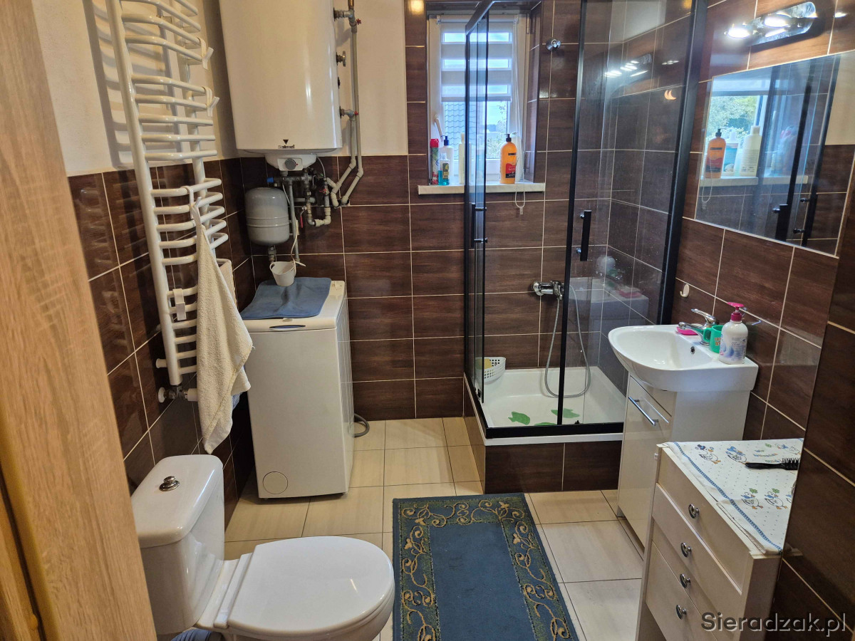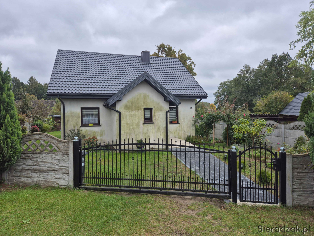 Sprzedam dom jednorodzinny o powierzchni użytkowej około 100m2 położony w centrum miejscowości Chajew gm. Brąszewice, W przedniej części ganek, z drugiej strony zabudowany taras (wyłożona kostka brukowa). Możliwość zagospodarowania poddasza na pokoje. Na poddaszu podłączony prąd oraz CO. Jedynie wystarczy dołożyć ścianki działowe. Na parterze 2 pokoje, kuchnia z salonem, łazienka oraz korytarz i ganek. W całym mieszkaniu podłączone CO piec opalany węglem, drzewem, peletem. Na zewnątrz dodatkowo wyciągnięte rurki CO aby podłączyć je do kotłowni zewnętrznej. Dom wybudowany około 2017/2018 r. z porothermu, ocieplenie styropian 15 cm. (założona siatk i zaciągnięty 2 klej oraz zabezpieczony farbą termoizolacyjną. Przydomowa oczyszczalnia ścieków założona w 2024 r. Posesja ogrodzona, usytuowana przy drodze powiatowej Błaszki - Złoczew, brama suwana, budynek gospodarczy drewniany wybudowany w 2024 r. Naprzeciwko posesji sklep spożywczy oraz około 100m przystanek PKS. Sieradz 22km, Złoczew i Błaszki 14km, Brąszewice 4km. Działka o pow. około 12-13ar. Cena do rozsądnej negocjacji 460000zł. Więcej informacji udzielę pod nr tel. 665251868