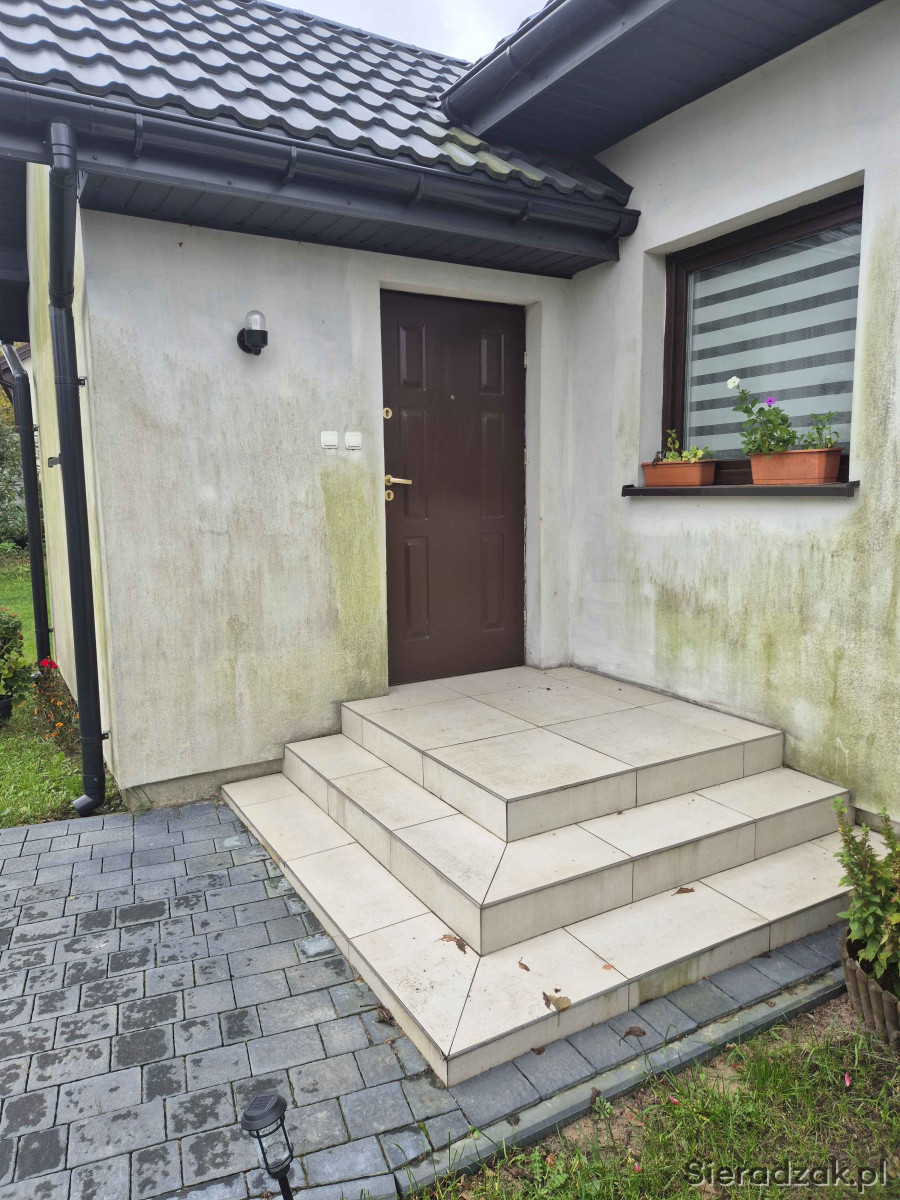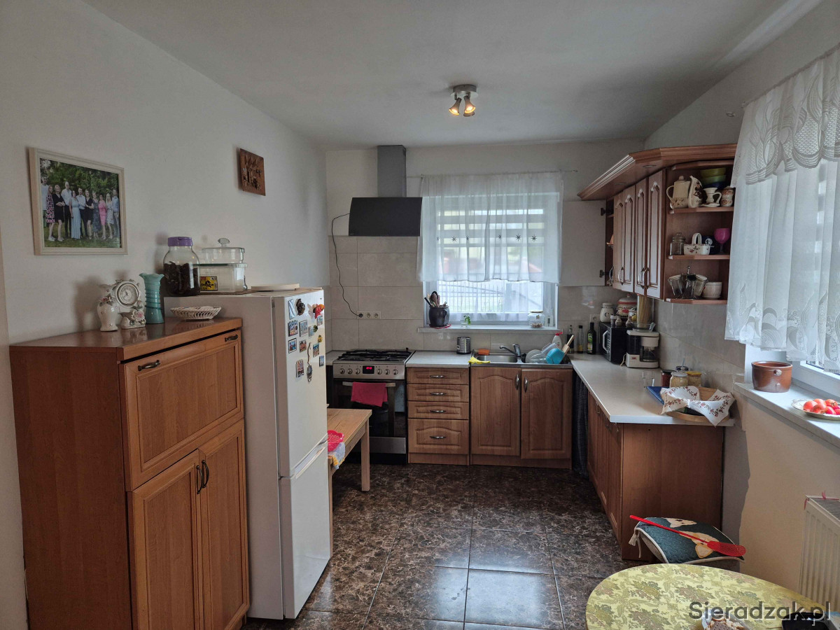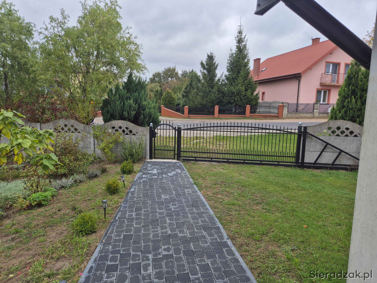 Sprzedam dom jednorodzinny o powierzchni użytkowej około 100m2 położony w centrum miejscowości Chajew gm. Brąszewice, W przedniej części ganek, z drugiej strony zabudowany taras (wyłożona kostka brukowa). Możliwość zagospodarowania poddasza na pokoje. Na poddaszu podłączony prąd oraz CO. Jedynie wystarczy dołożyć ścianki działowe. Na parterze 2 pokoje, kuchnia z salonem, łazienka oraz korytarz i ganek. W całym mieszkaniu podłączone CO piec opalany węglem, drzewem, peletem. Na zewnątrz dodatkowo wyciągnięte rurki CO aby podłączyć je do kotłowni zewnętrznej. Dom wybudowany około 2017/2018 r. z porothermu, ocieplenie styropian 15 cm. (założona siatk i zaciągnięty 2 klej oraz zabezpieczony farbą termoizolacyjną. Przydomowa oczyszczalnia ścieków założona w 2024 r. Posesja ogrodzona, usytuowana przy drodze powiatowej Błaszki - Złoczew, brama suwana, budynek gospodarczy drewniany wybudowany w 2024 r. Naprzeciwko posesji sklep spożywczy oraz około 100m przystanek PKS. Sieradz 22km, Złoczew i Błaszki 14km, Brąszewice 4km. Działka o pow. około 12-13ar. Cena do rozsądnej negocjacji 460000zł. Więcej informacji udzielę pod nr tel. 665251868
