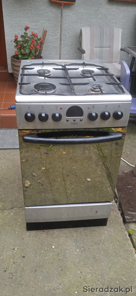 kuchenka gazowo-elktyrczna 50 cm kuchenka piekarnik sprawny 3 palniki dziala jeden duzy nie sprawny idealna do letniej kuchni jako zapasowa wymaga umycia