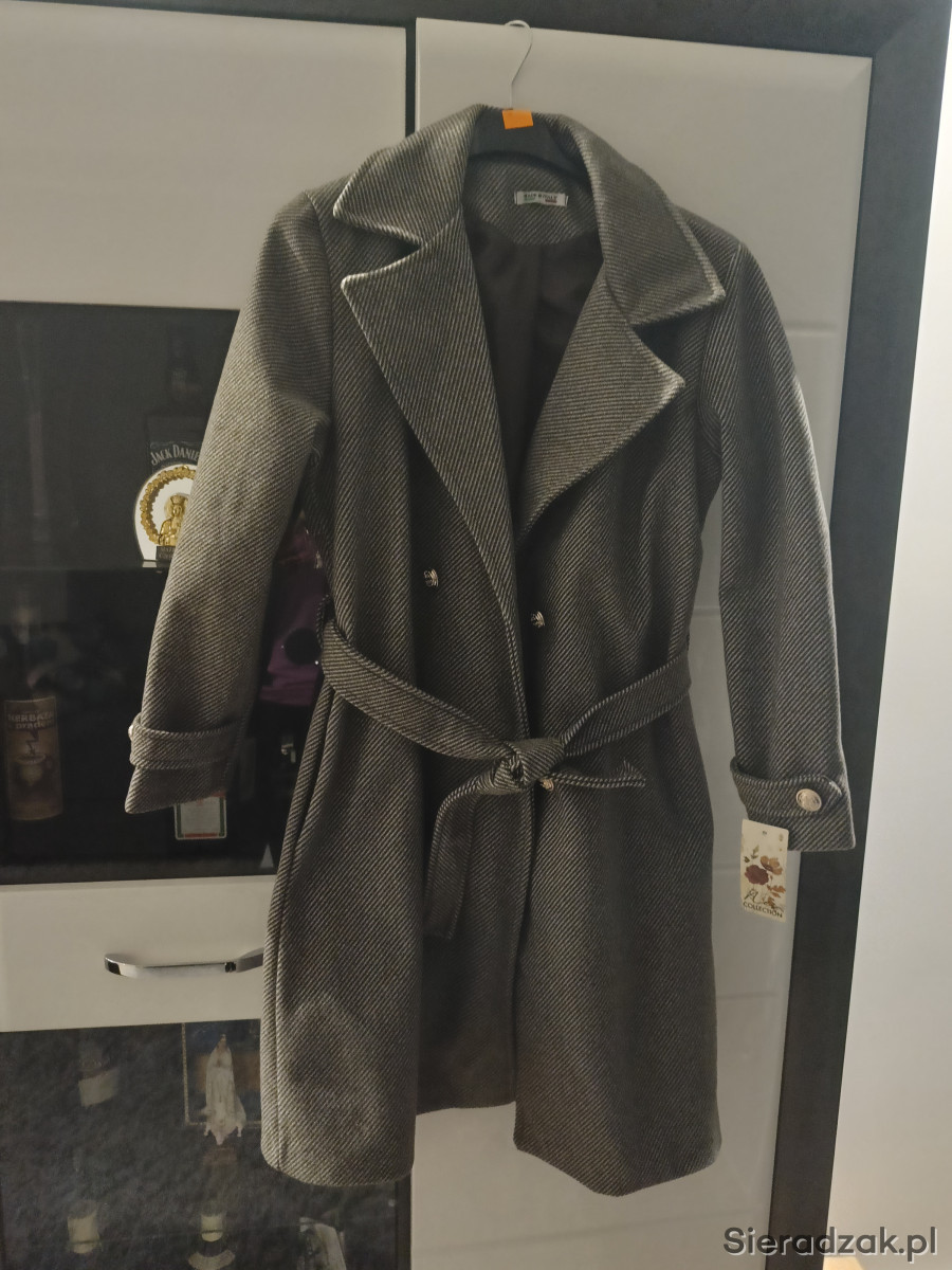 Witam posiadam na sprzedaż płaszcz nowy jeszcze z metką , został zamówiony i okazał się za mały.Płaszcz pasuje tak na rozmiar L/XL.Biust 116cm.biodra 120cm.dł.98cm. Płaszcz jest w jodełkę koloru ciemno szary, posiada pasek oraz kieszenie.Osoby zainteresowane zapraszam do obejrzenia i przymierzenia.