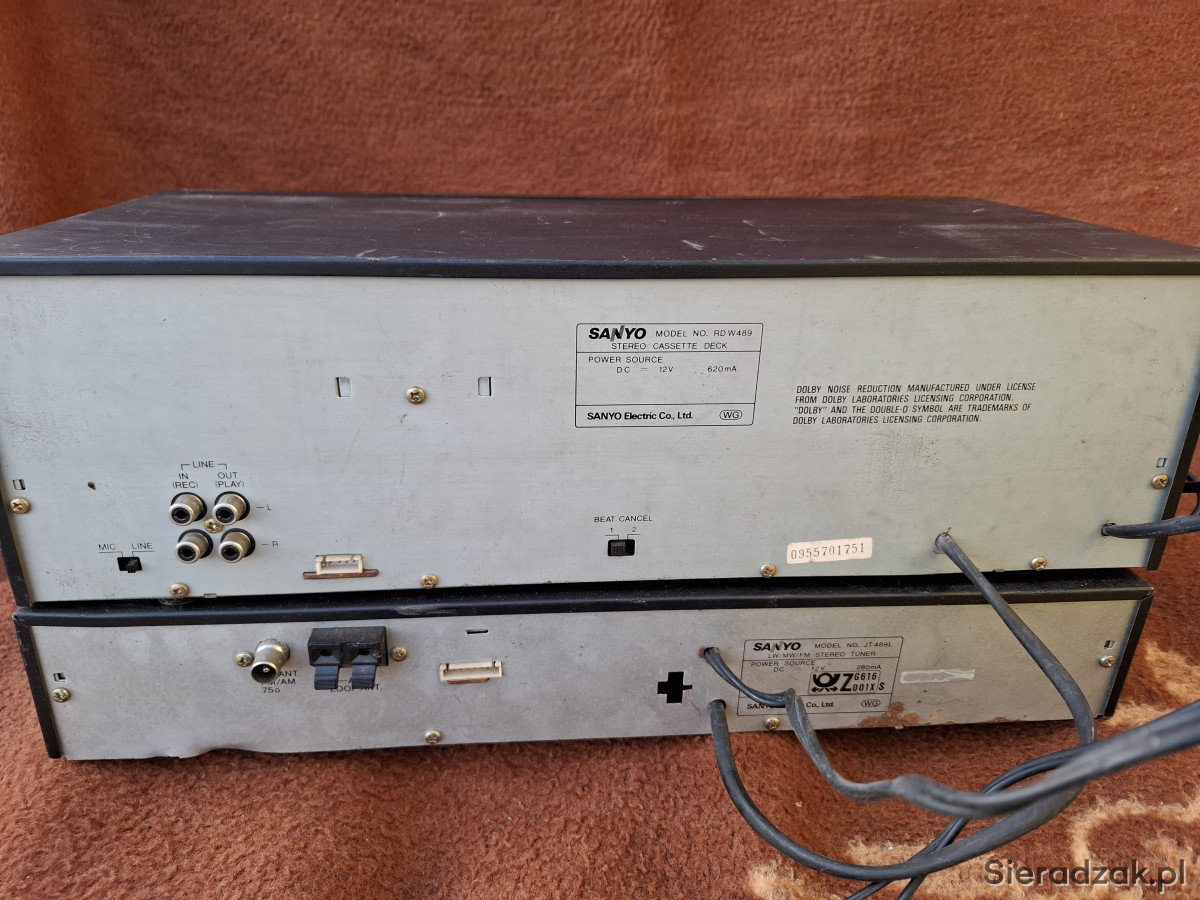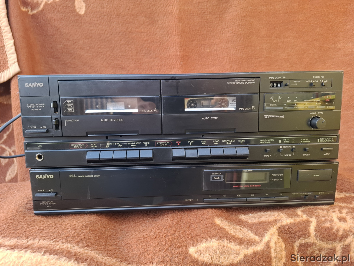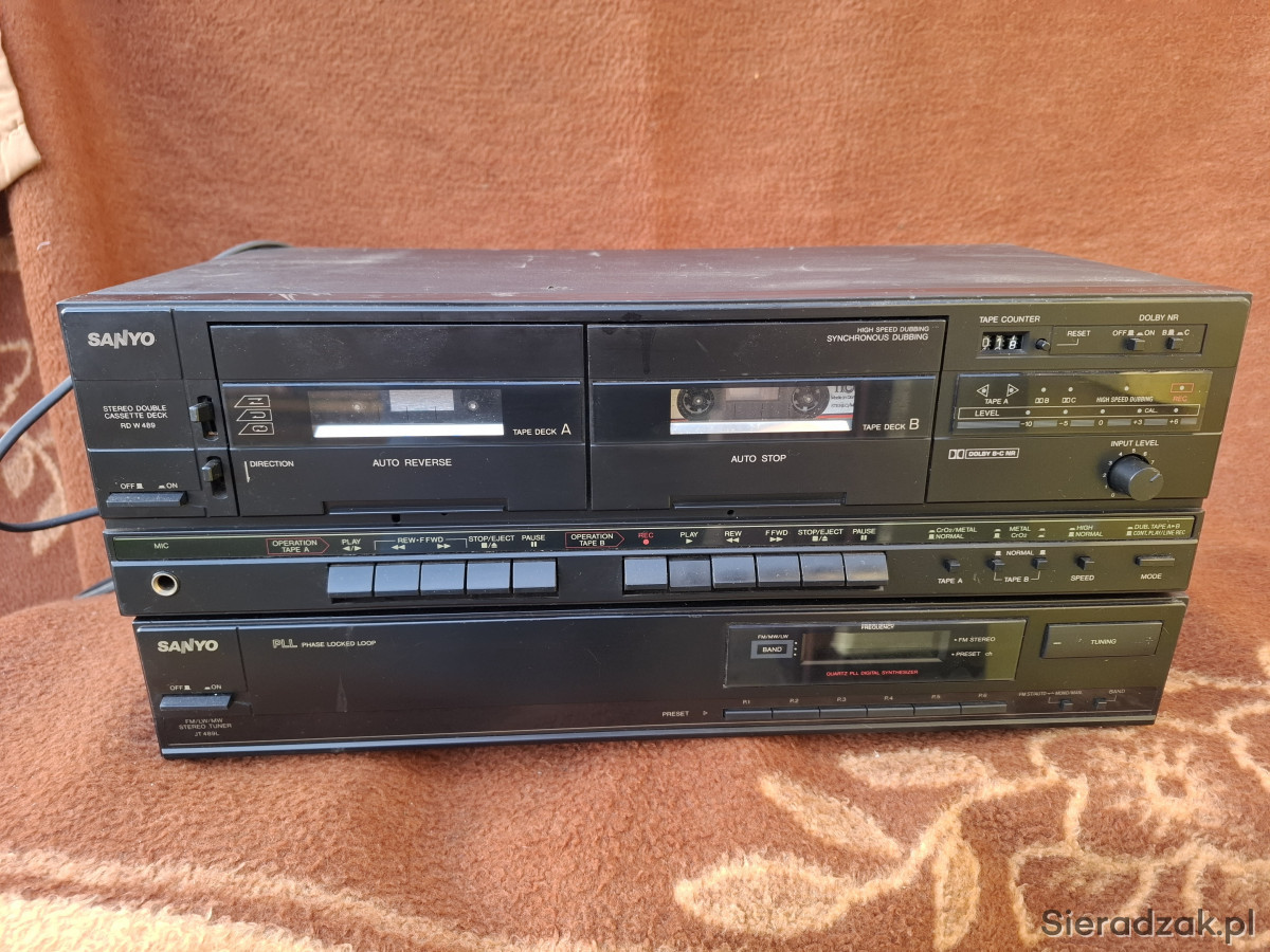 Sprzedam magnetofon dwukasetowy marki SANYO RD-W 489 . Sprzęt technicznie sprawny (możliwość sprawdzenia) wizualnie posiada otarcia jak i niewielkie wgniotki co widać na zdjęciach. Dodaję do niego za darmo tuner niestety nie przestrojony.