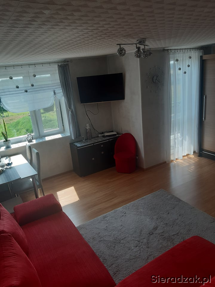 Na wyposażeniu mieszkania kuchenka gazowa,meble kuchenne, stół kuchenny, szafa, kanapa, szafka rtv. (Brak tv, pralki, lodówki, mebli dziecięcych ze zdjęcia w małym pokoju i stołu z krzesłami w dużym pokoju).