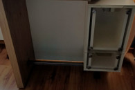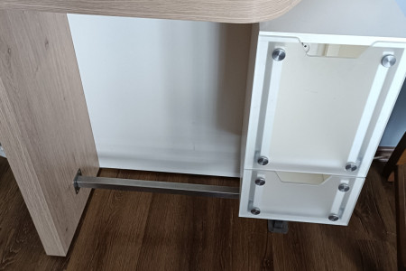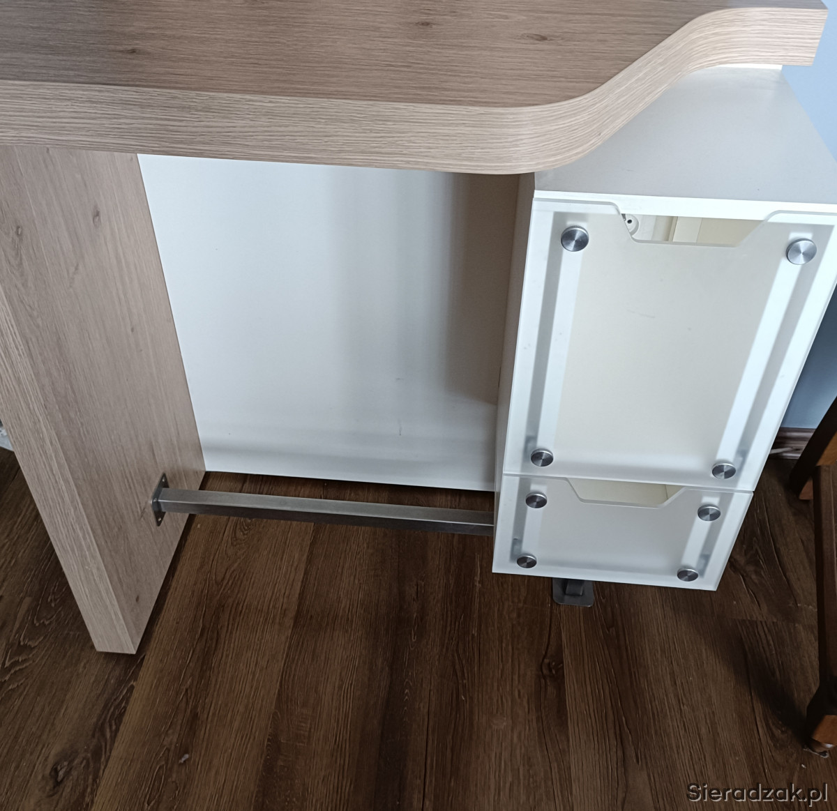 Sprzedam praktyczne szafki z dwiema szufladami w neutralnym kolorze, idealne do przechowywania rzeczy w każdym pomieszczeniu.