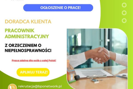Doradca klienta - pracownik administracyjny (K/M) z orzeczeniem o niepełnosprawności (3/4 etatu)