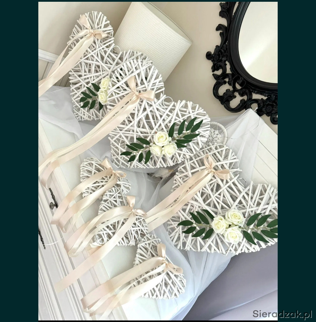 Sprzedam dekoracje weselne w stanie idealnym. W sprzedaży 7 dużych serc i średnicy 40 cm, zielone gałązki do kompozycji balonowych oraz dekoracje na samochód. Zainteresowanych zapraszam do kontaktu to podeślę również zdjęcia gałązek i wystroju auta.