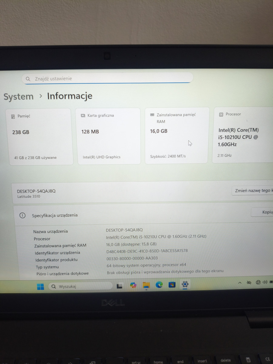 Na sprzedaż mam laptopa Dell Latitude 3510 15 cali FullHD.