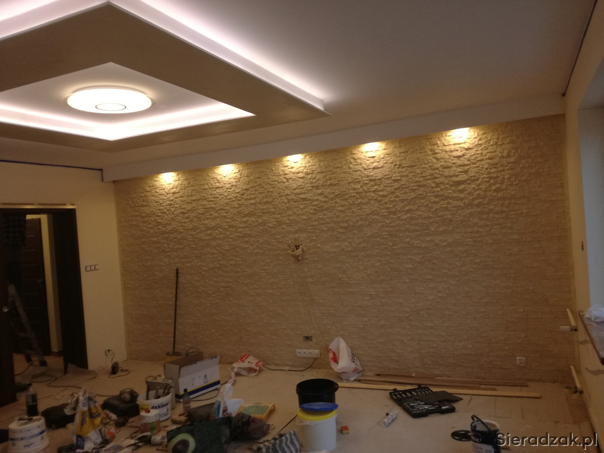 - Szpachlowanie, równanie ścian (pod światłem LED ).