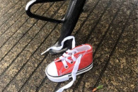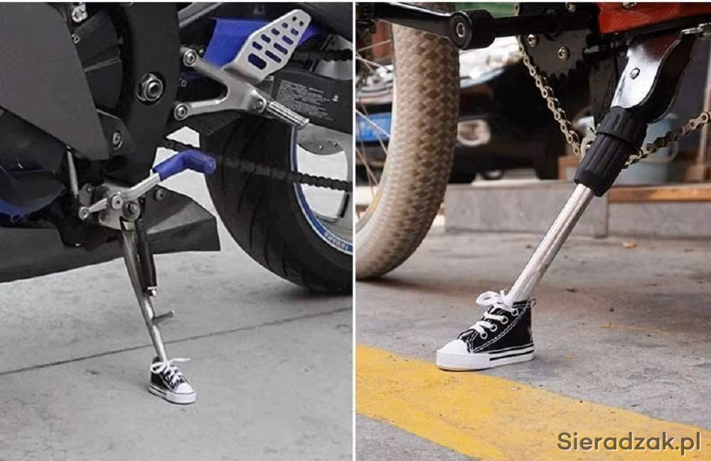 Oferuję kreatywny pokrowiec na stopkę do motocykla. But spełnia to same zadanie co klasyczne poszerzenie stopki.