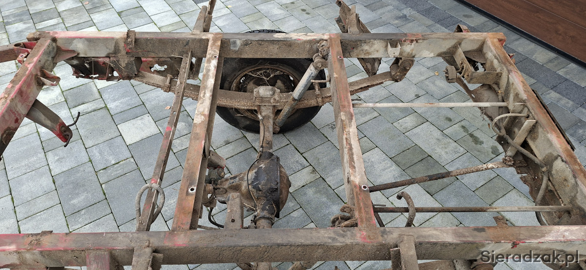 sprzedam ramę z dyszlem do zabudowy według własnego uznania. Idealna pod skrzynię, kłonice lub mauzery. Rama zdrowa, bez korozji. Zawieszenie na resorze plus amortyzatory. Wysokość od podłoża do górnej krawędzi ramy 76cm, wymiar ramy 204cm x 102cm.