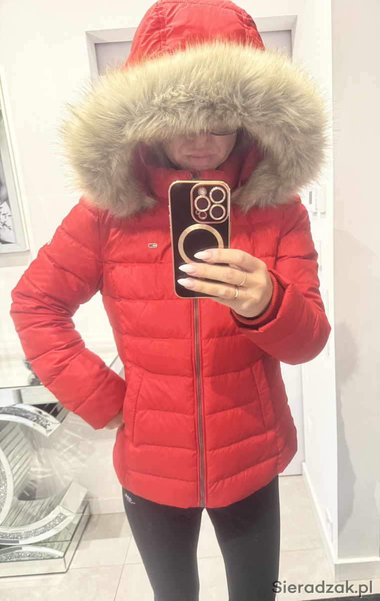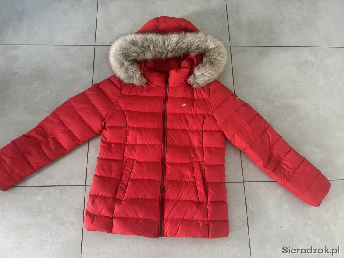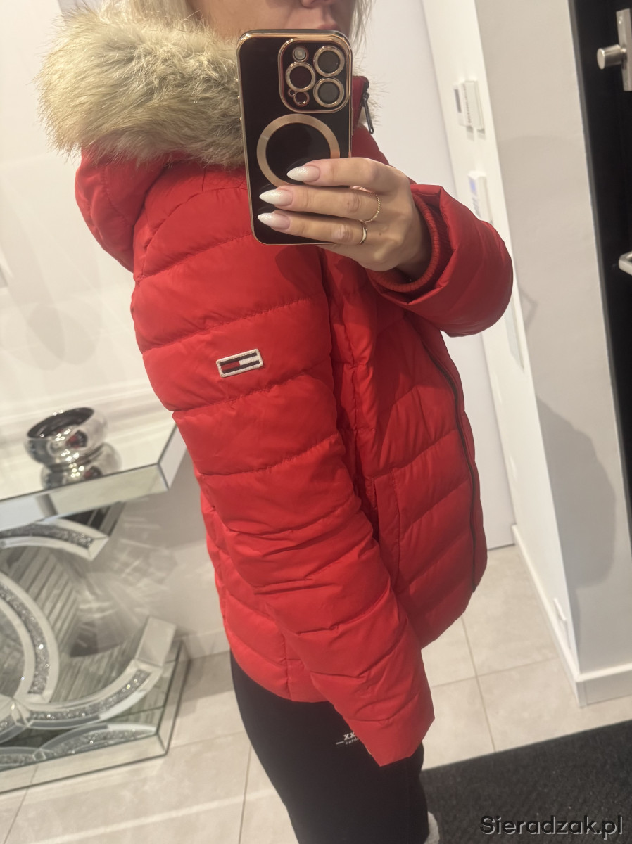 Zimowa kurtka marki Tommy Jeans w rozmiarze L. Bardzo ciepła. Stan bardzo dobry. Wymiary: długość całkowita od ramienia 65 cm, szerokość pod pachami 49 cm. Wymiary mogą się różnić +/- 1 cm. Polecam