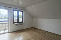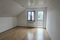 Piętro to dwa pomieszczenia pokojowe, kuchnia i łazienka.