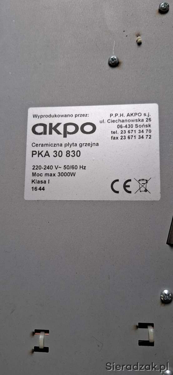 Witam. Do sprzedania płyta ceramiczna Akpo jak w opisie. Moc 3000 wat. Wymiary wpustu (do wycięcia w blacie) 26 na 48 cm. Wymiary płyty od góry to 30 na 52 cm.