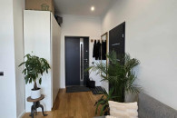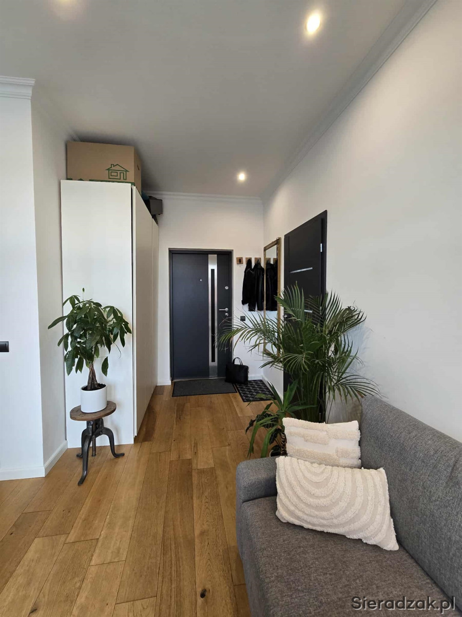 Mieszkanie składa się z otwartego salonu z wyjściem na balkon, salon połączony z jadalnią i kuchnią, oddzielna sypialnia, garderoba - może służyć jako dodatkowa, mała sypialnia i łazienka z wc.