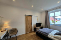 Mieszkanie jest piękne, wysokie, wyremontowane w odnowionej kamienicy w centrum miasta.
