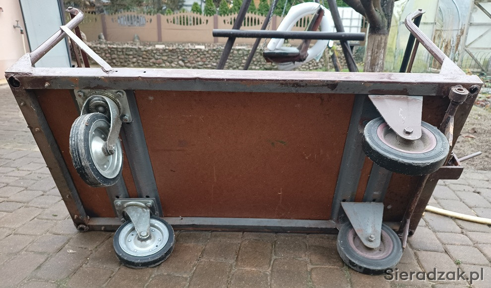 Do sprzedania wózek transportowy, czterokołowy z przednimi kołami skrętnymi i z hamulcem. Stan widoczny na zdjęciach, wiecej informacj udzielę telefonicznie.