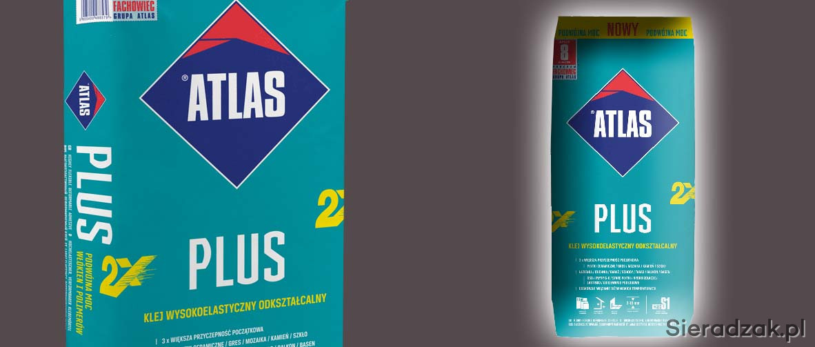 Klej ATLAS PLUS 25kg - do wszelkiego rodzaju okładzin ceramicznych, kamiennych, szklanych, płyt kompozytowych i paneli do płytek wielkiego formatu > 1m 2 na trudne podłoża: płyty OSB i g-k, stare płytki, podłogi z desek, powierzchnie metalowe i tworzywa sztuczne na tarasy, balkony i elewacje, do basenów i zbiorników technolo- gicznych (również na wodę pitną) do obiektów budownictwa mieszkaniowego, handlowo-usłu- gowego, budynków użyteczności publicznej i budownictwa przemysłowego A