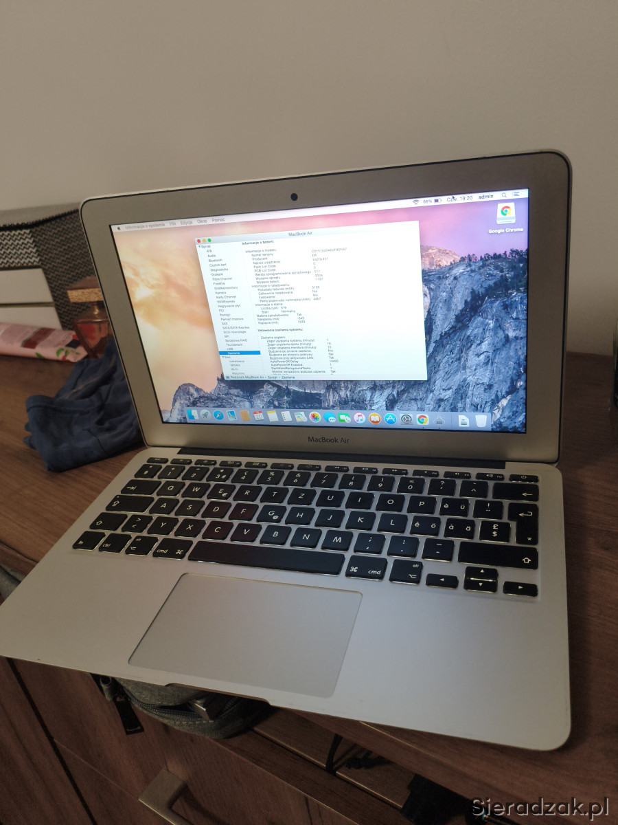 Dzień dobry, na sprzedaż laptop Apple Macbook Air z procesorem Intel Core i5, dyskiem SSD i baterią zapewniającą 4 godziny pracy.