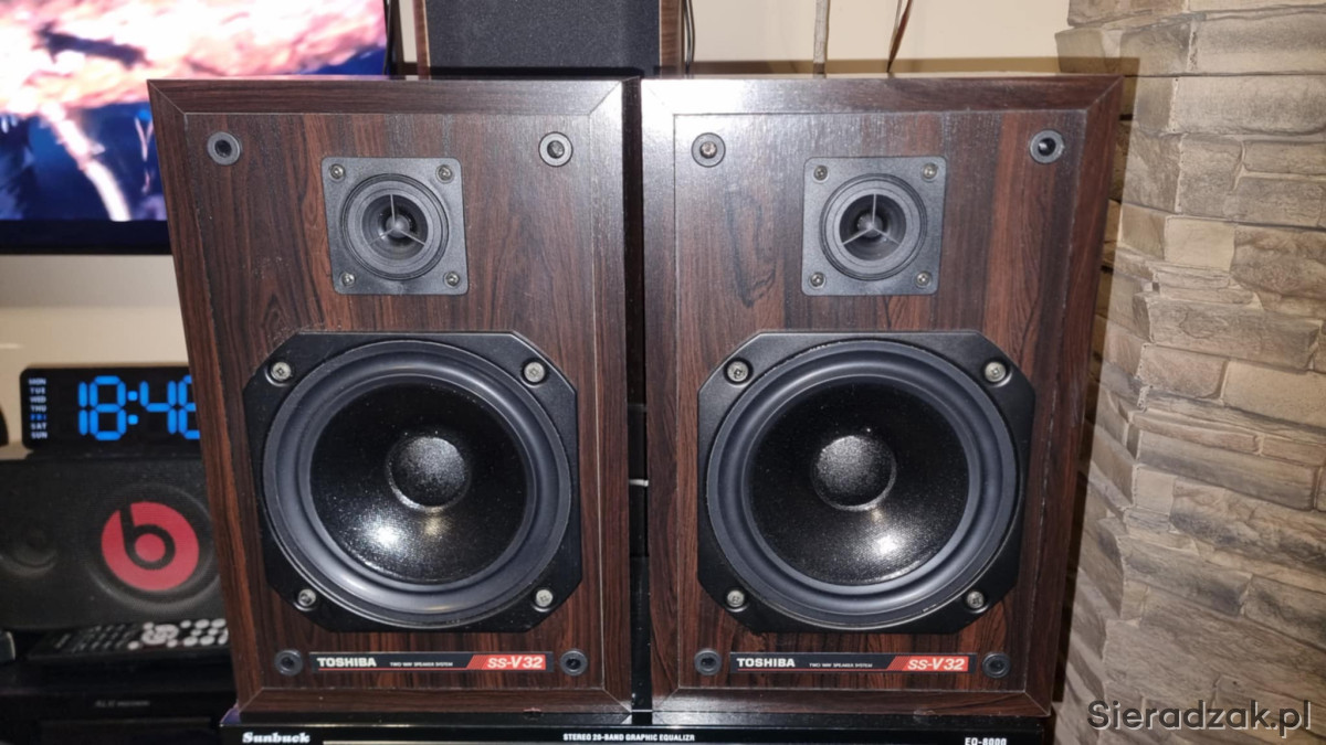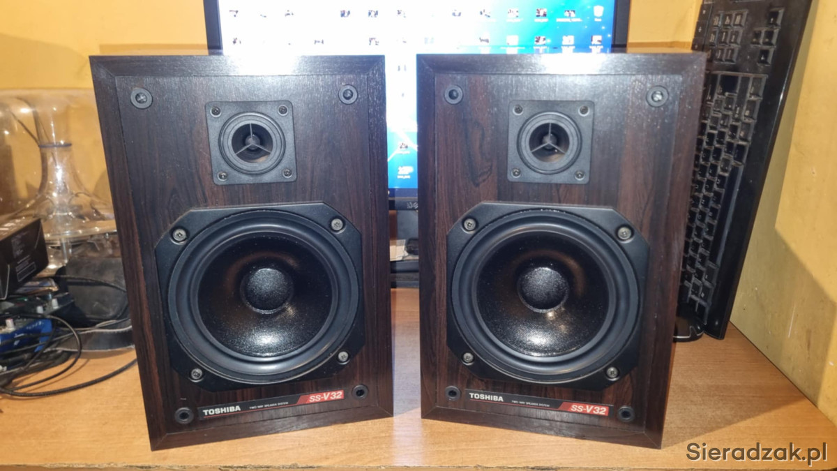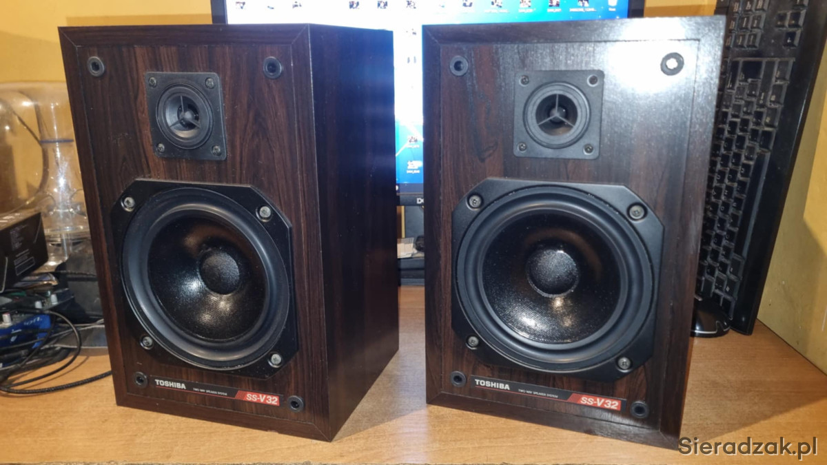 Kolumny monitory TOSHIBA SS-V32 2x40W 8ohm U.K. United Kindgom wyprodukowane w Angli bardzo rzadkie małe monitory podstawkowe regałowe.