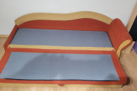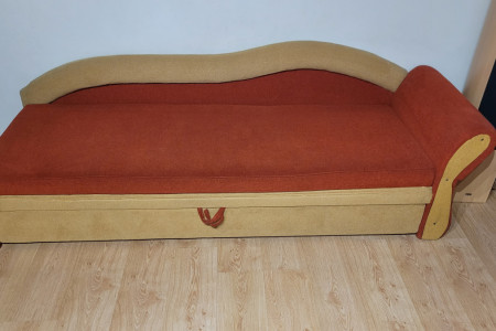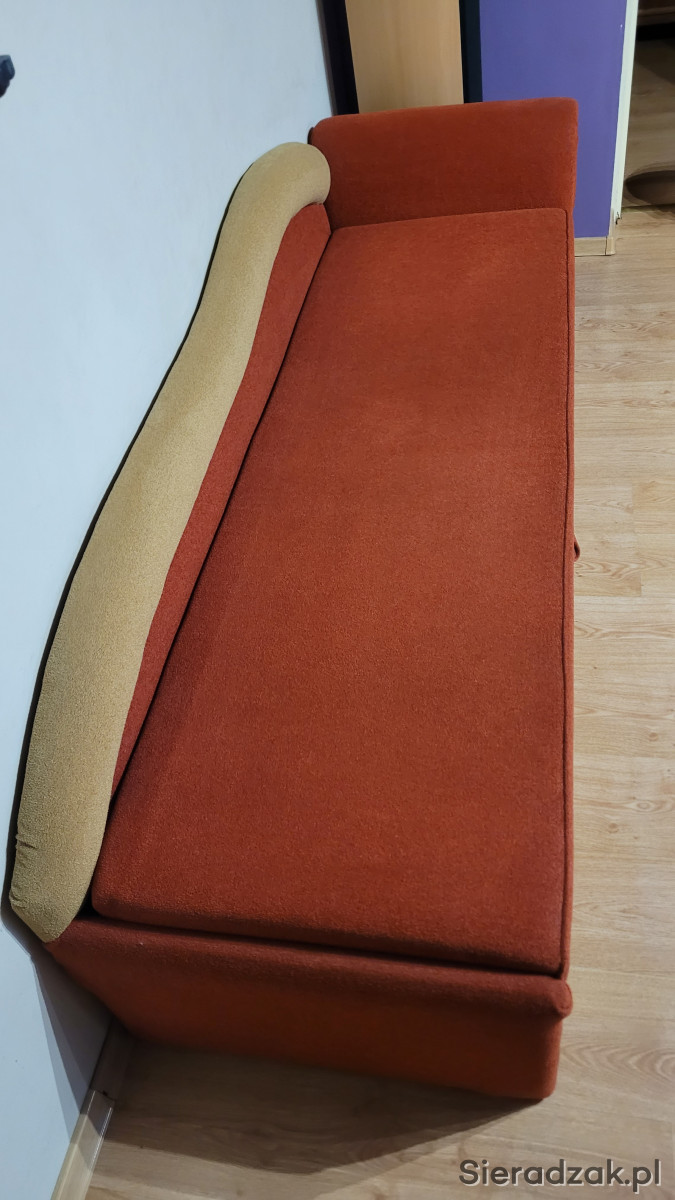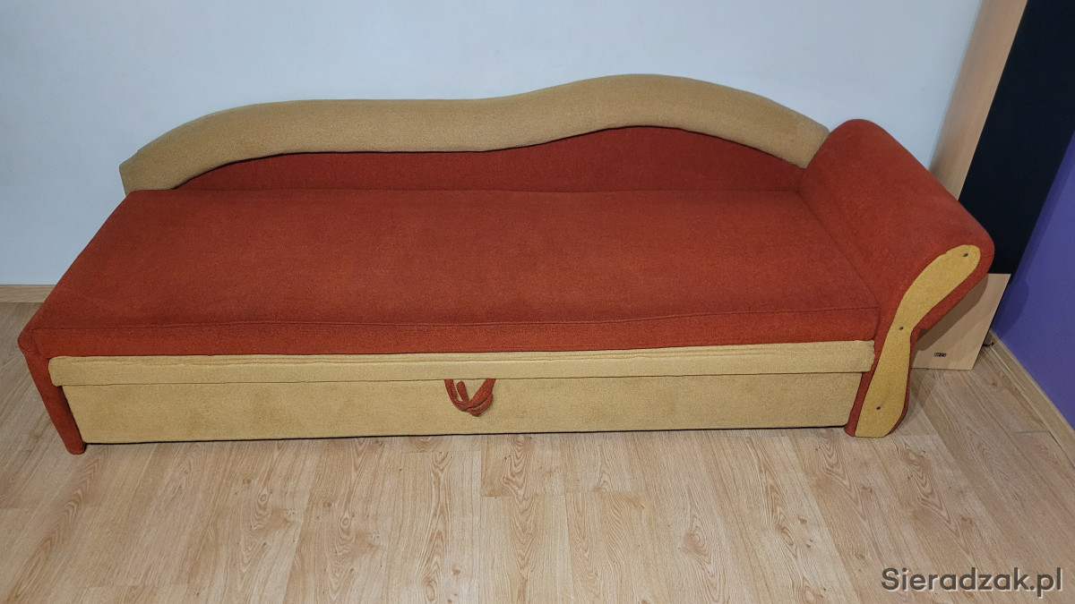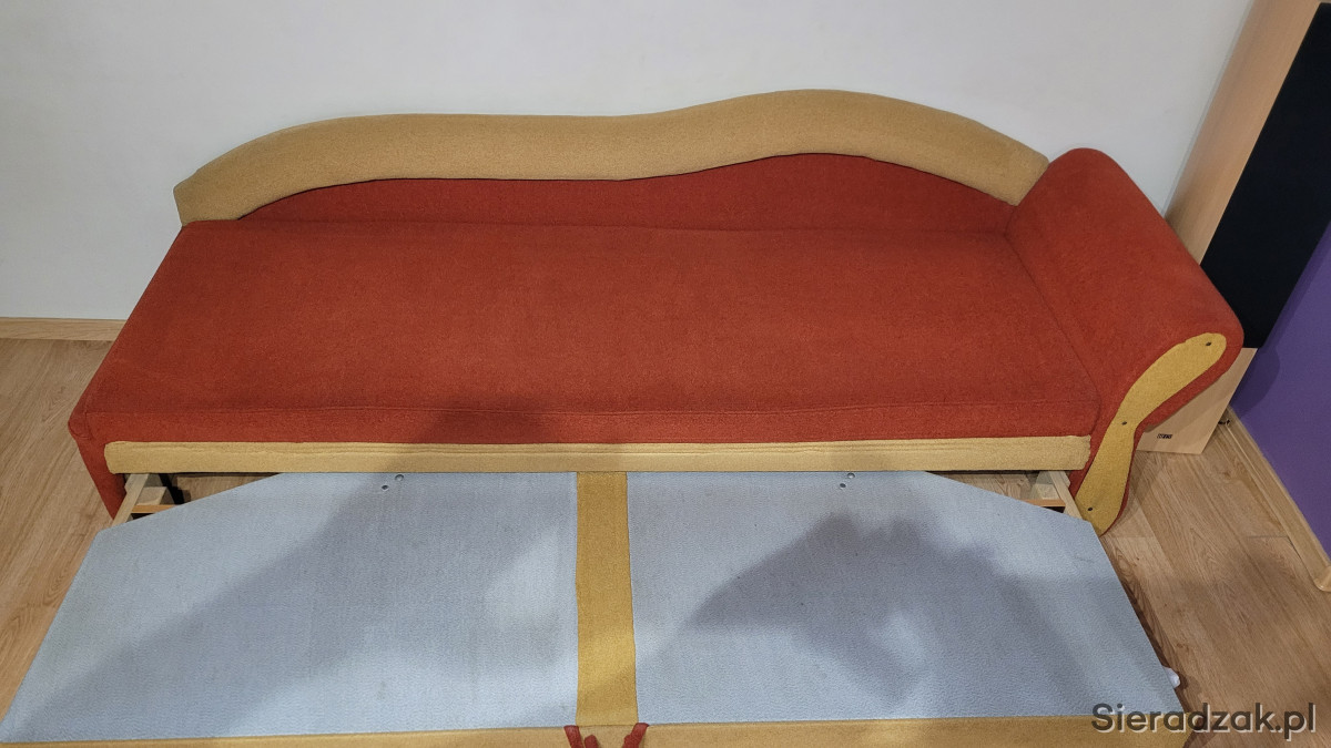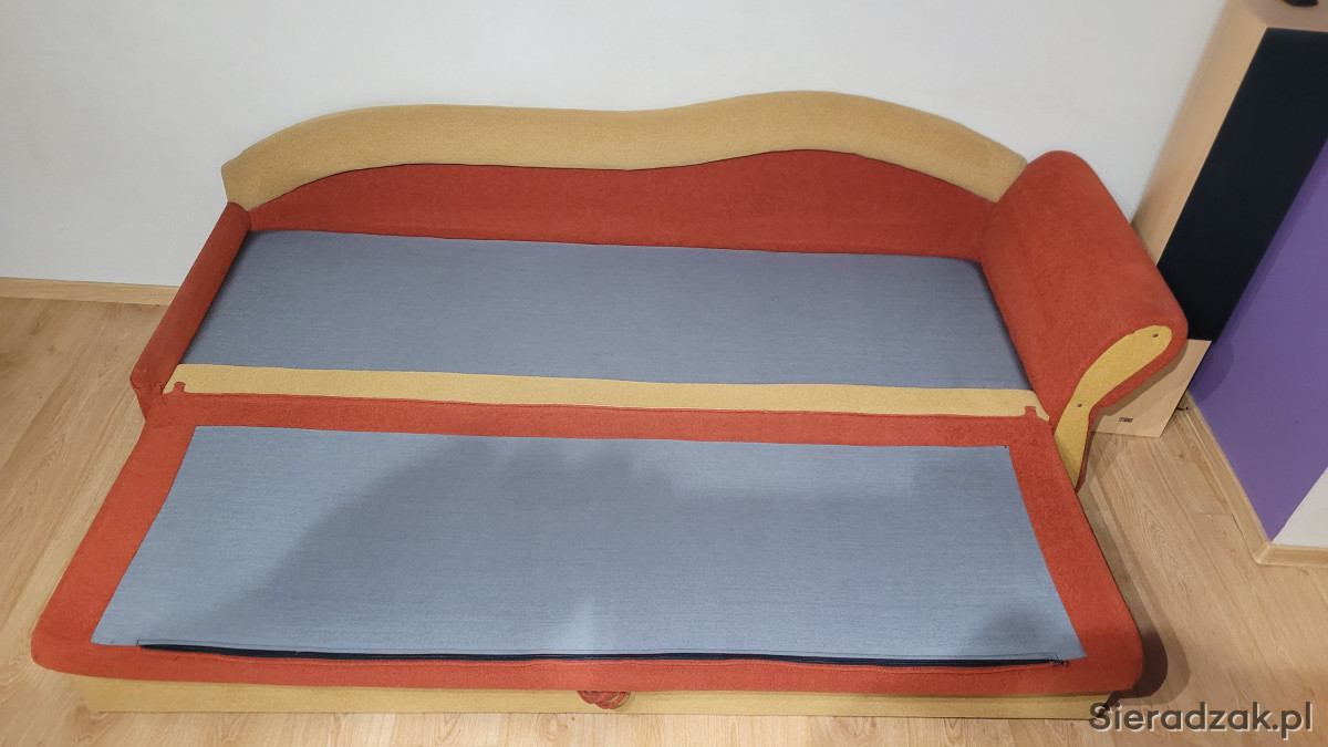 Łóżko jest rozkładane i posiada pojemnik na pościel.