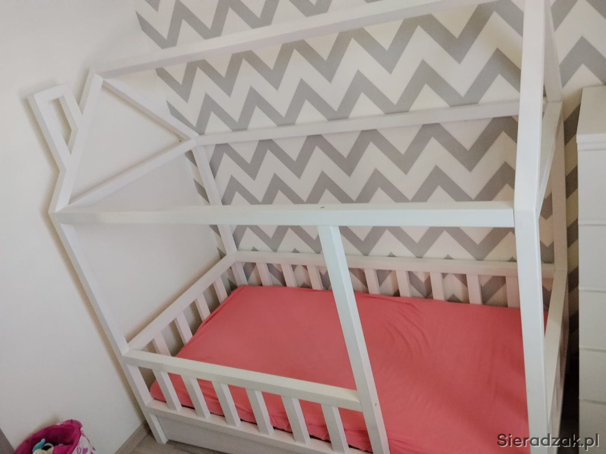 na sprzedaż łóżeczko typu domek, koloru białego , wymiary zewnętrzne 89x 169, wysokość w najwyższym punkcie 166 cm wraz z dwiema solidnymi szufladami. Łóżeczko drewniane, solidna konstrukcja , dodatkowo materac 80x160 oraz prześcieradło. Stan bdb. Córka wyrosła. Cena do negocjacji.Na drugiej aukcji łóżeczko z motywem Psiego Patrolu.