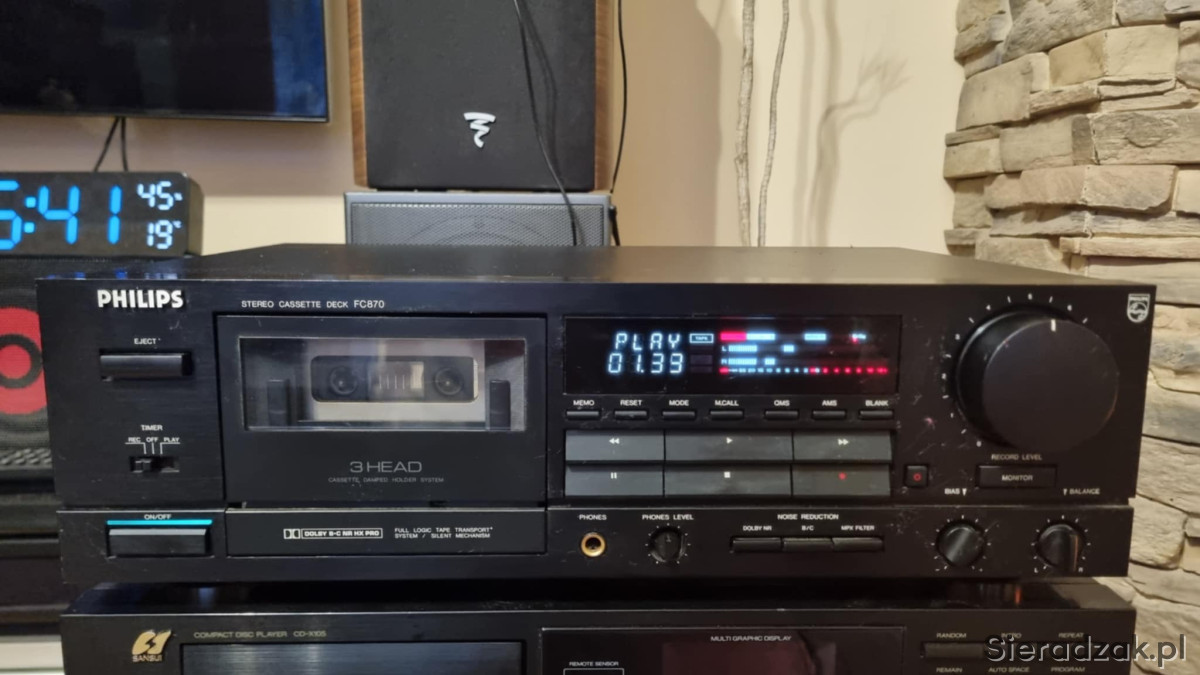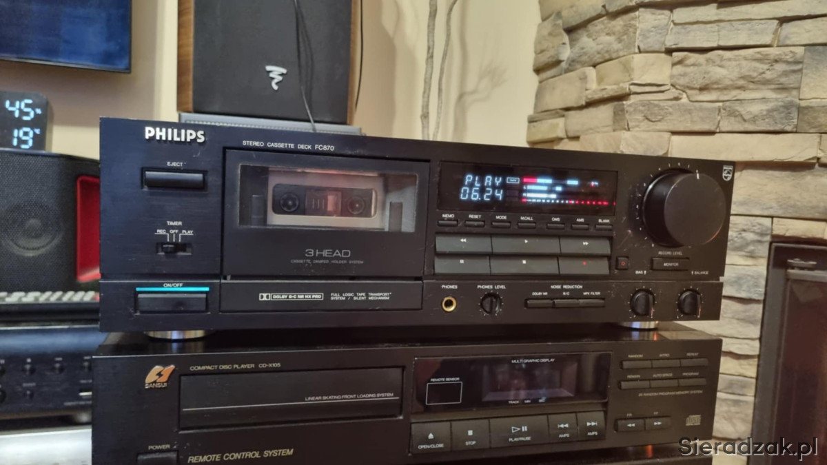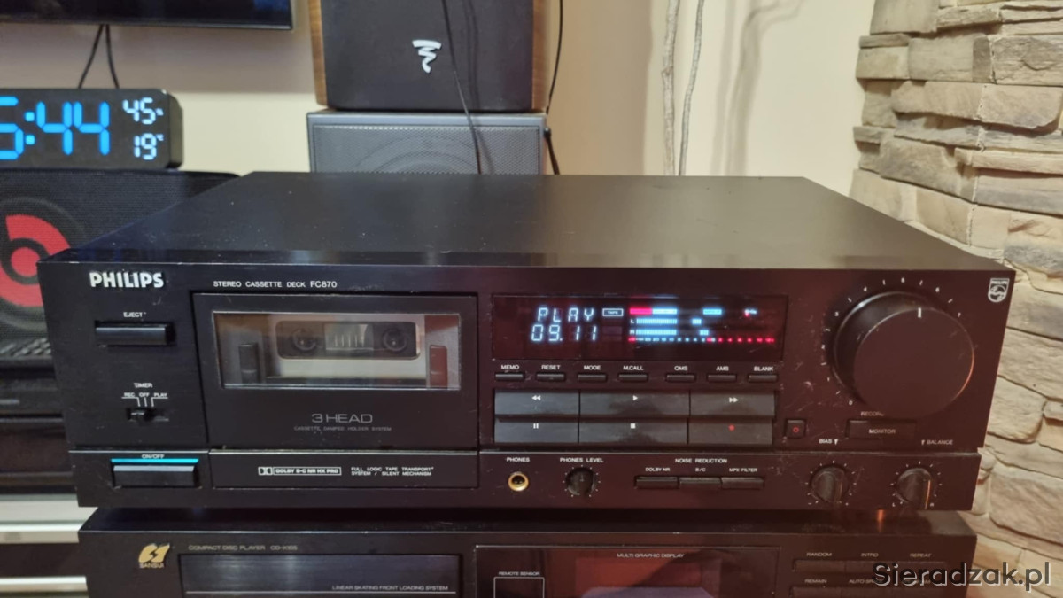 Wysokiej klasy magnetofon Philips'a FC870. Według wielu opinii jest to najciekawszy deck tej marki powstały we współpracy z Marantz'em. Jest to wysoki model wyposażony w 3 głowice i sporo różnych przydatnych funkcji. Solidna masywna budowa. Zapraszam do zakupu!