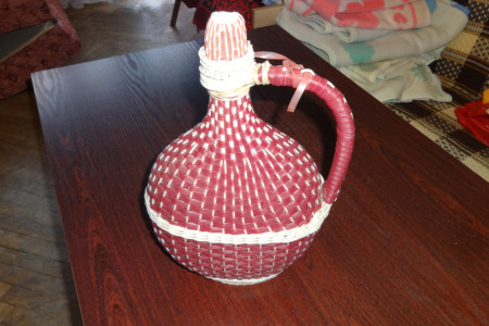 Posiadam do sprzedaży naczynie na wino w koszyku wiklinowym PRL.