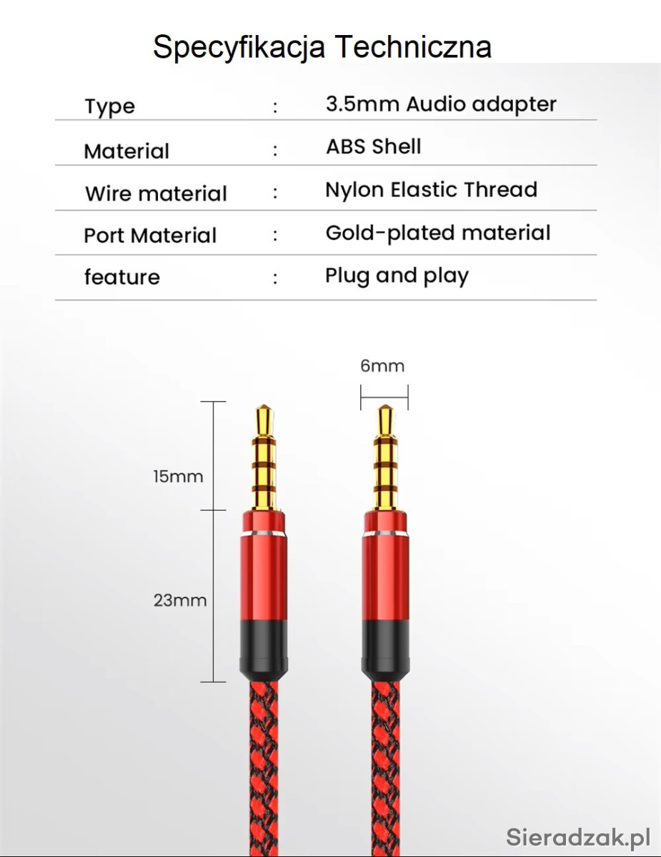 - Rodzaj wtyczki: Jack 3.5mm