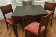 Stół ma wymiary 90 x 90 z możliwością rozłożenia do 180 cm