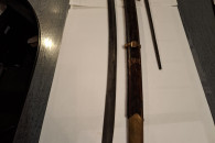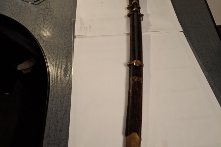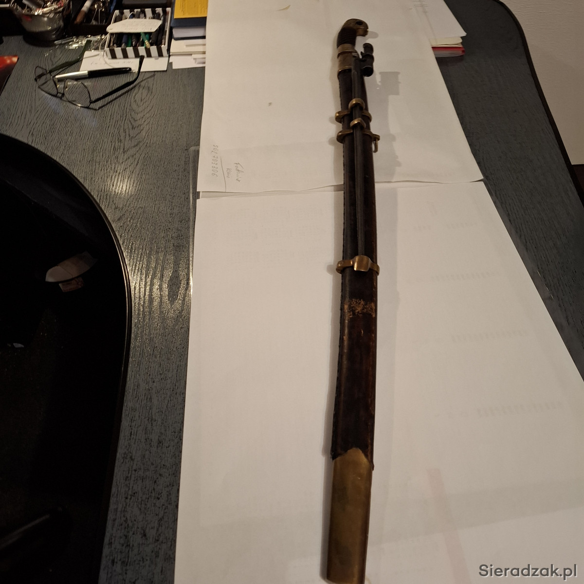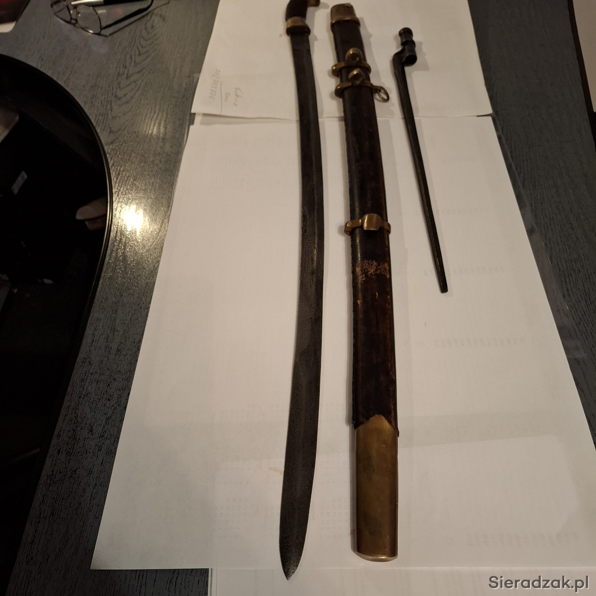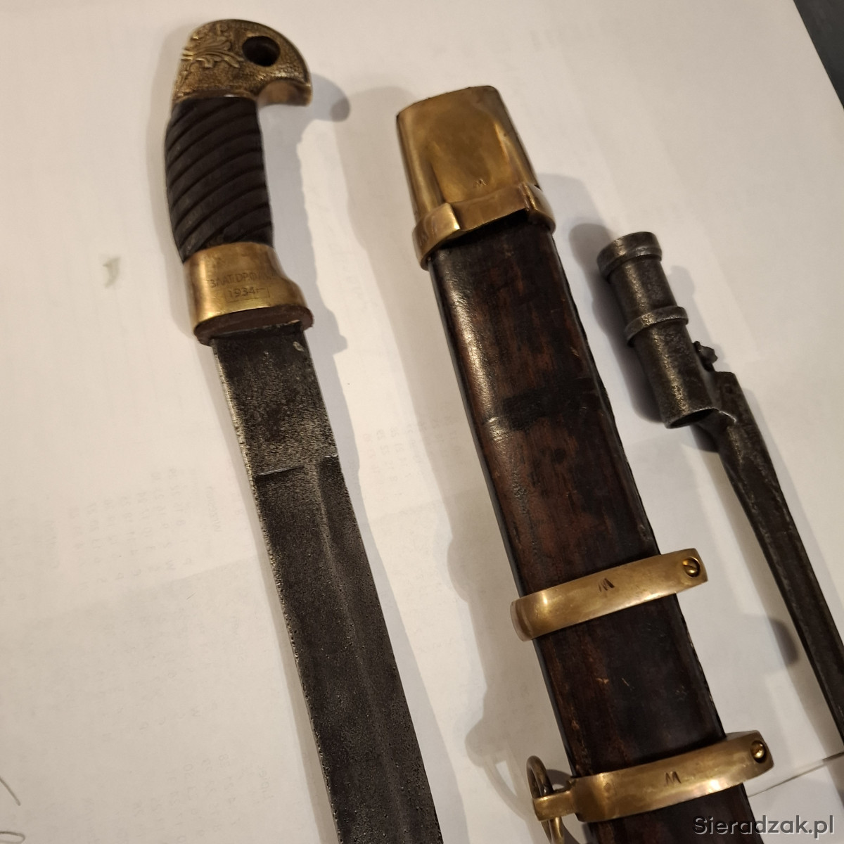 Rosja. Szabla kozacka - szaszka - . z pochwą i bagnetem do karabinu Mosin. Wykonana współczesnie. na wzór szaszki z 1934r. Ma sygnowania i napisy - tak jak na orginalnej szabli. Długość w pochwie -98 cm.