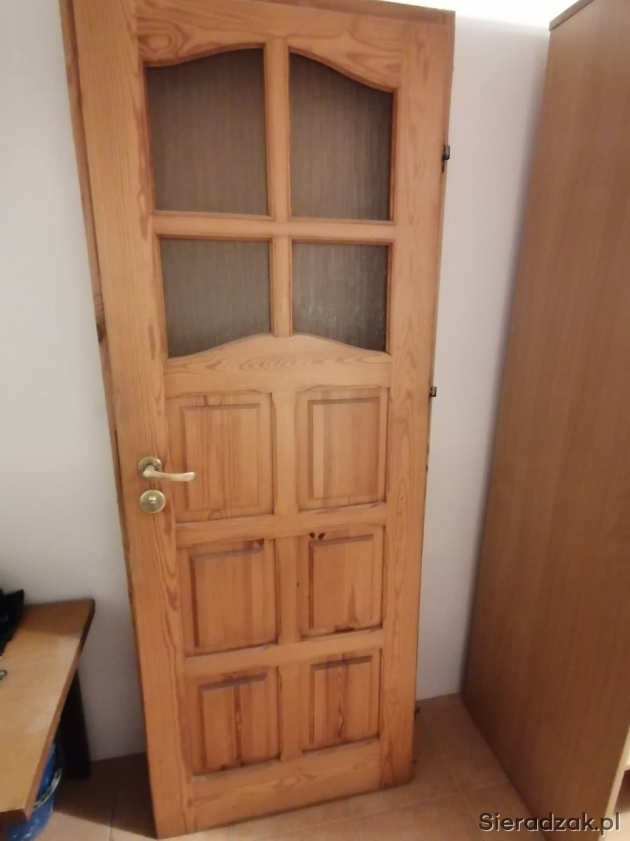 Drzwi w dobrym stanie, naturalne drewno, tylko normalne ślady użytkowania.