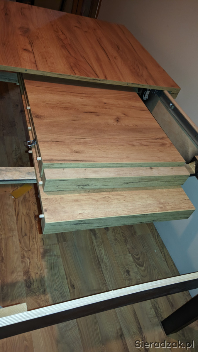 Stół jest prawie nowy. Okazał się za duży do mojego salonu. Na zdjęciu nie jest cały rozłożony.