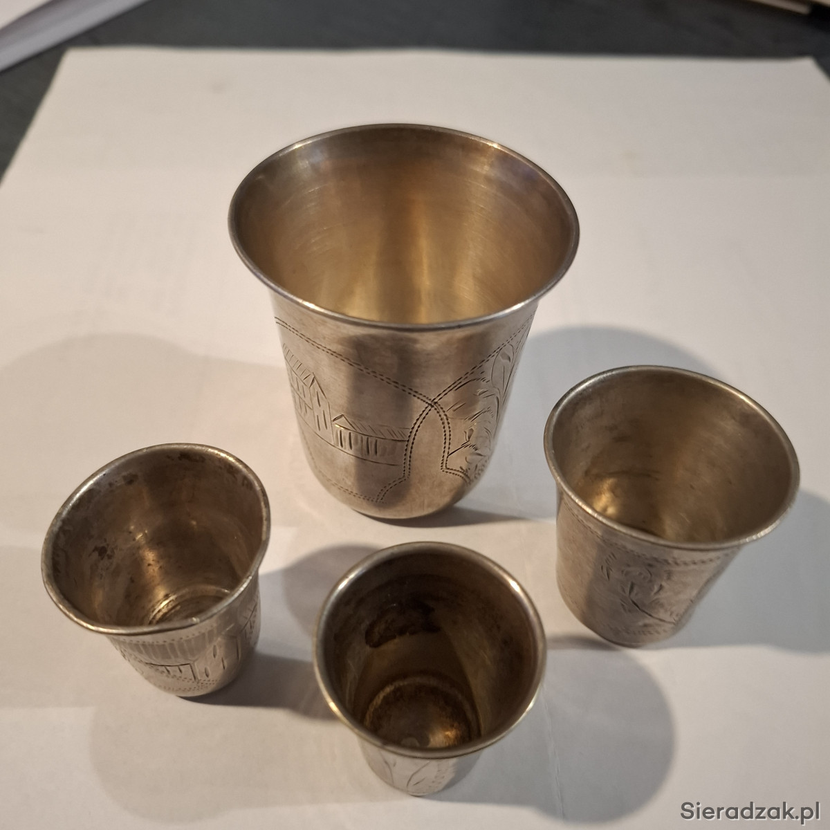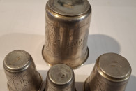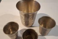 Cztery stare kieliszki - pr. 84. Waga łączna 96,49 g.. Ręcznie grawerowane.