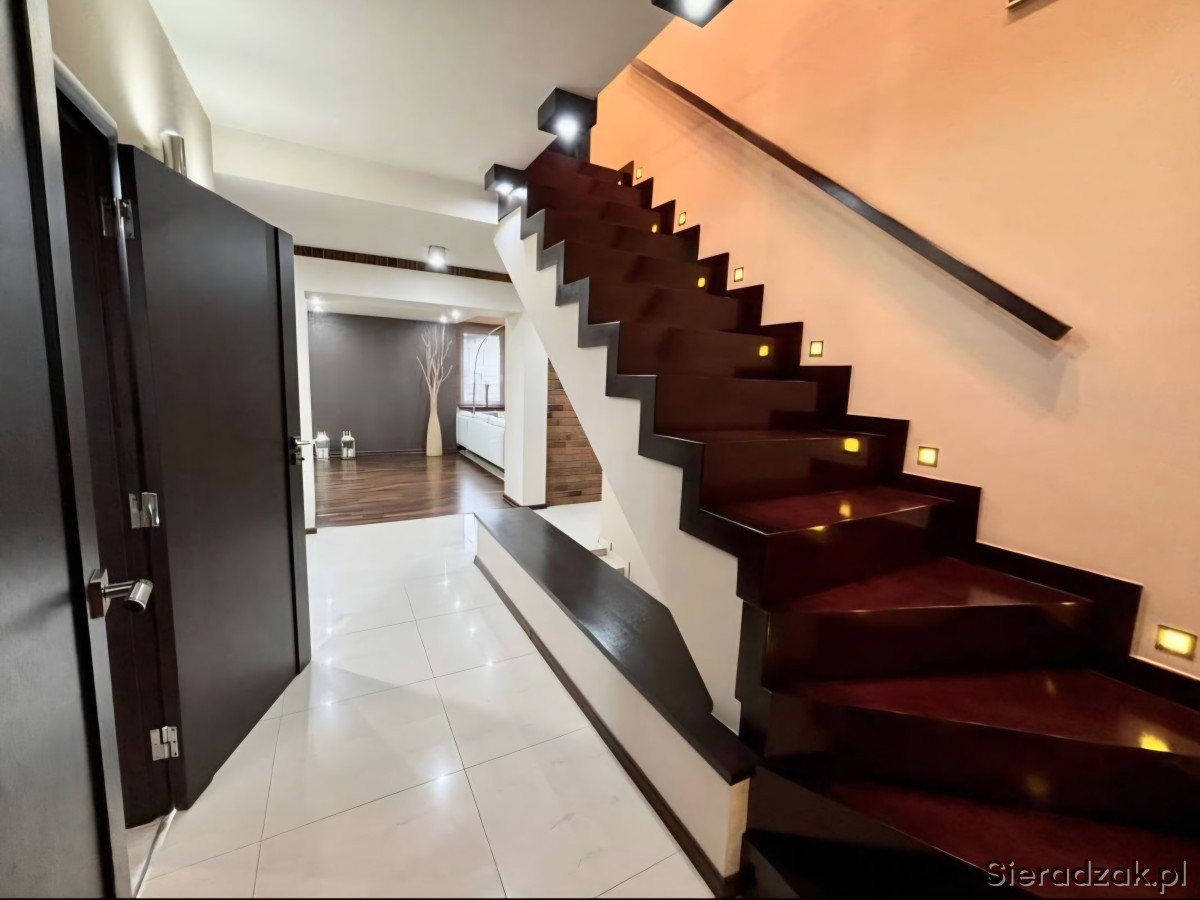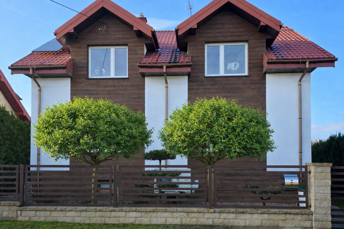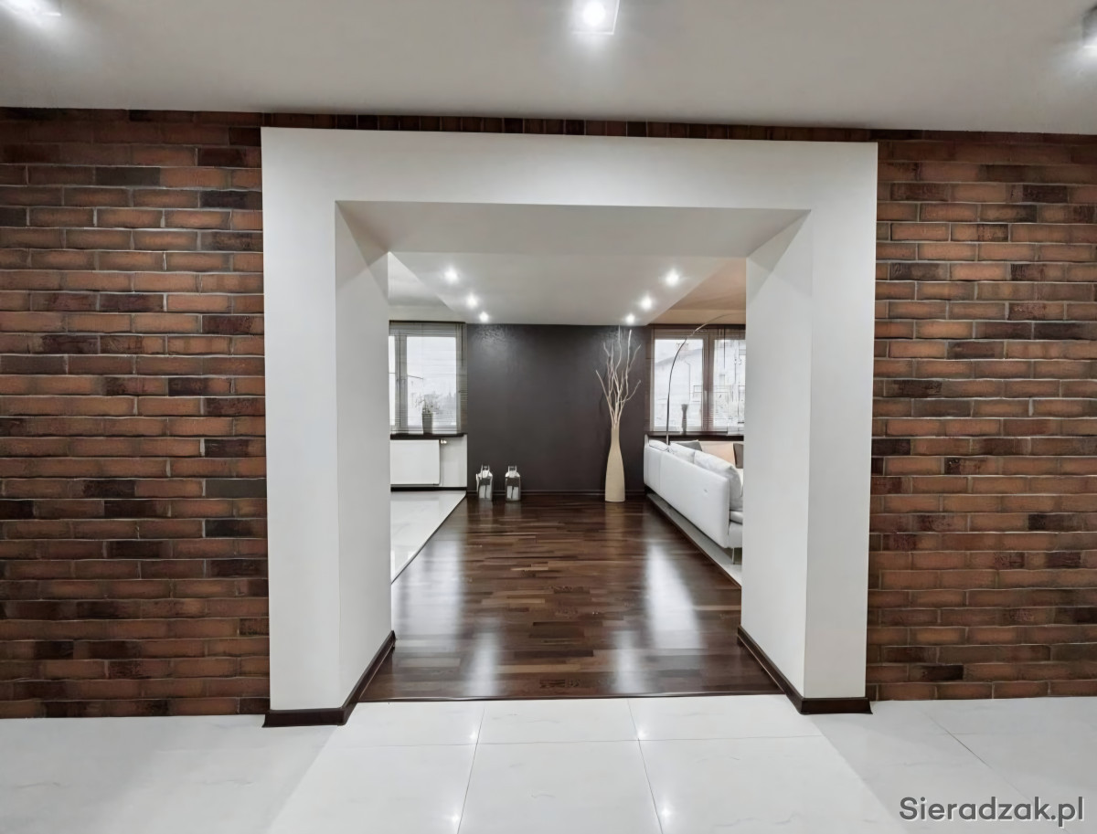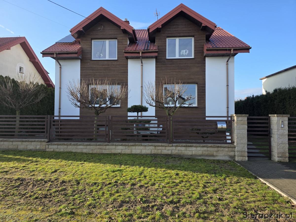 Dom piętrowy, podpiwniczony o powierzchni 176 m2+ 90m2 piwnica zaadoptowana na pomieszczenia mieszkalne, znajduje się tam druga kuchnia, dwa pokoje oraz pomieszczenie gospodarcze. W skład parteru wchodzi: salon z otwartą kuchnią i jadalnią, pokój gościnny oraz łazienka z prysznicem. Na piętrze znajdują się trzy duże pokoje, dwie sypialnie i obszerna garderoba oraz pokój kąpielowy wyposażony w wannę i prysznic. Dom jest po kapitalnym remoncie, podczas którego wymieniono instalację elektryczną, hydrauliczną. Całość domu ogrzewana pompą ciepła. Zamontowane są również panele fotowoltaiczne. Parter i częściowo piętro posiada ogrzewanie podłogowe.
