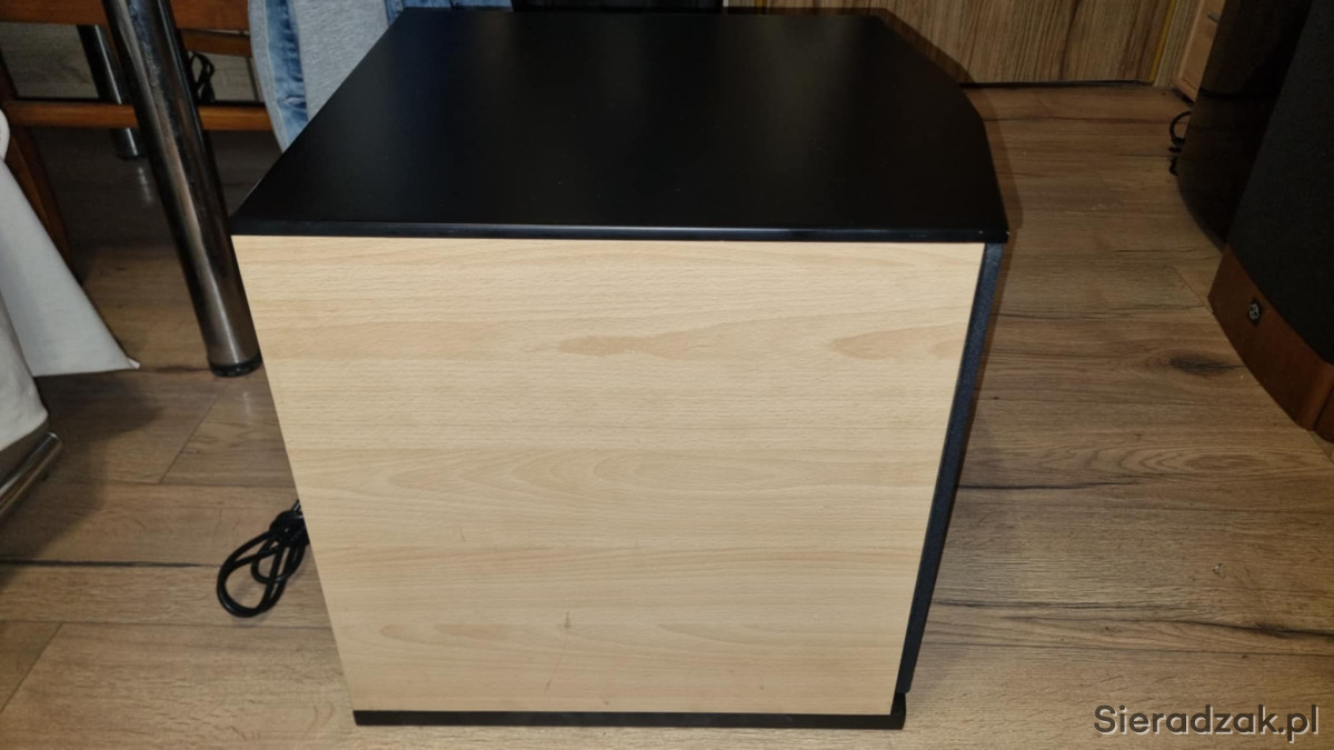 Subwoofer sprawny w stanie jak na foto. W maskownicy pęknięte 2 żeberka. Gra niesamowicie. Polecam.