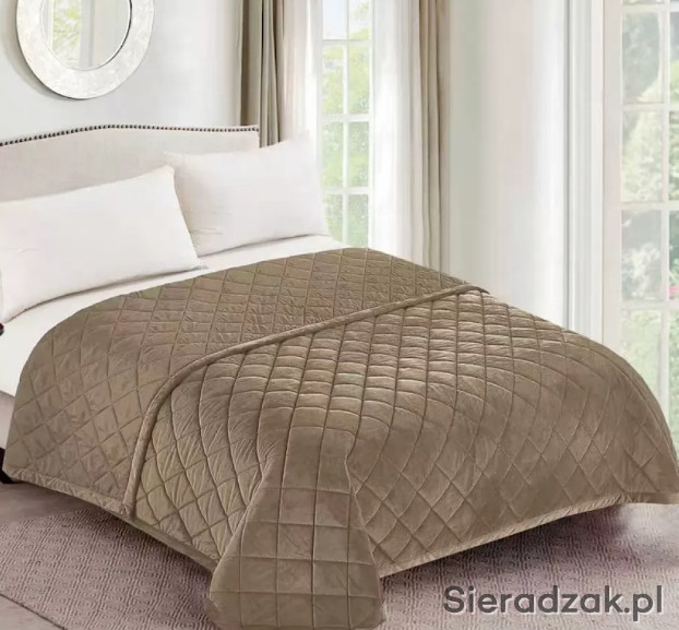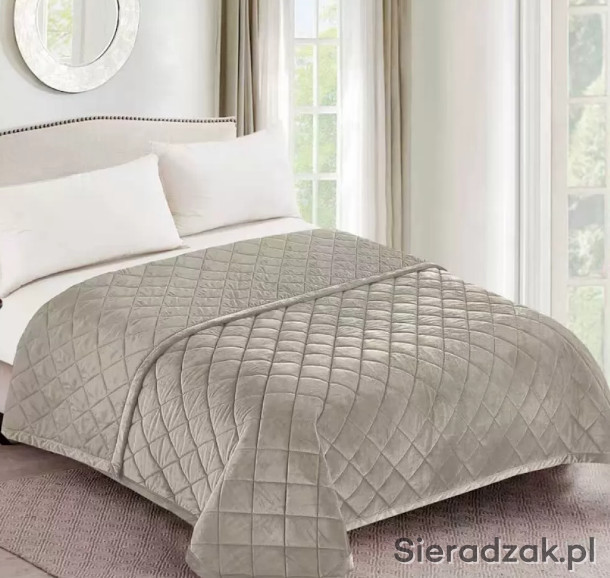 Ta welurowa narzuta sprawdza się doskonale w codziennym życiu: mikrofibra jest lekka, ale spójna dzięki gęstemu splotowi, dzięki czemu poszewka leży płasko i się nie marszczy. Wzór w kratkę jest prosty, nieskomplikowany i pozbawiony krzykliwych detali, dzięki czemu łatwo wpasuje się zarówno do jasnej sypialni, jak i do bardziej stonowanego wnętrza.