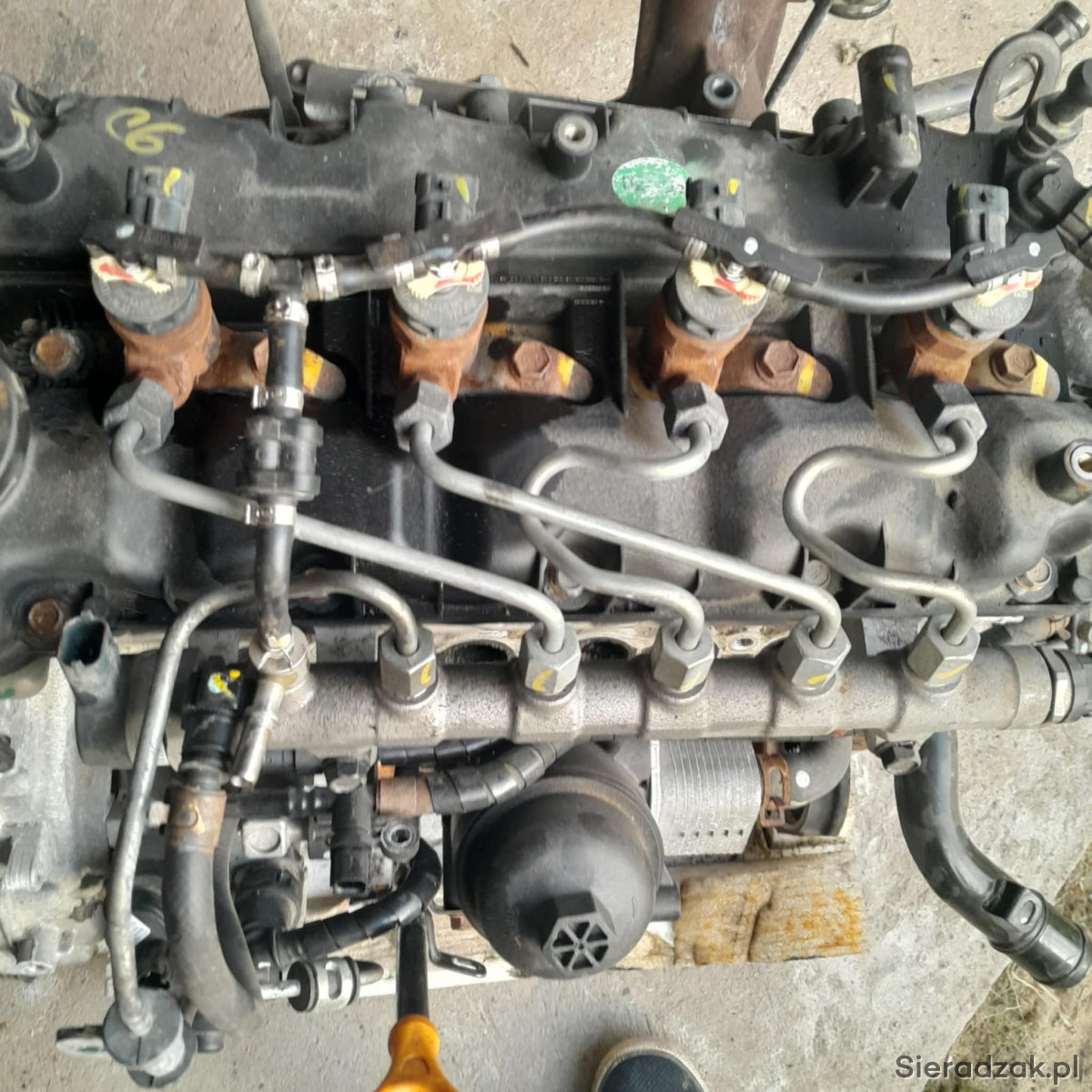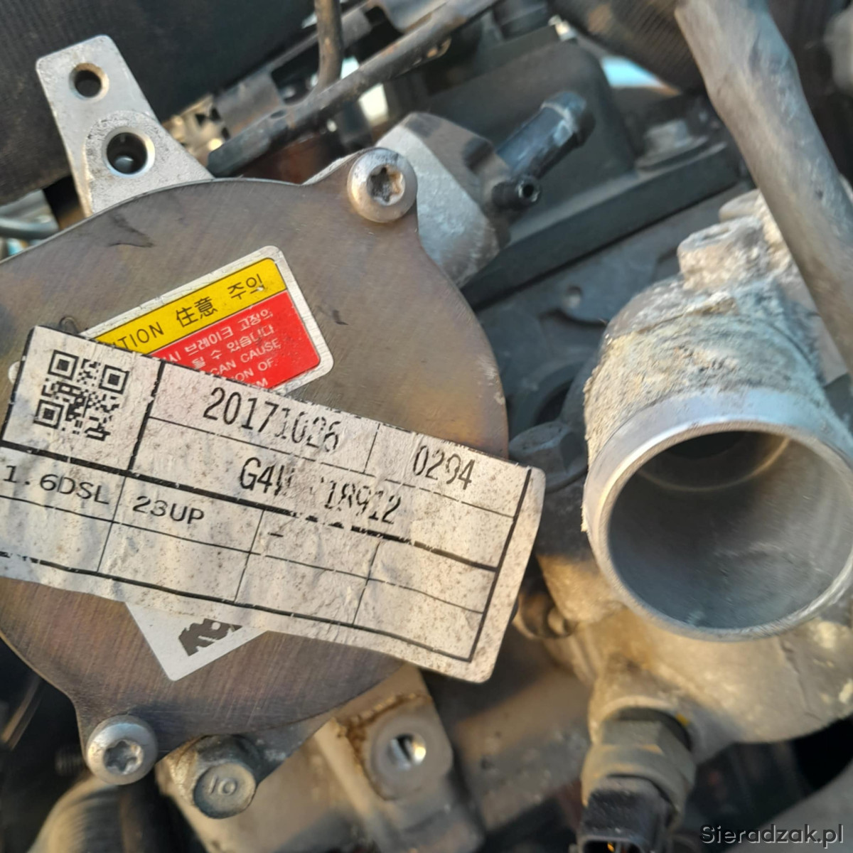 Spzredam silnik do Hyundaia i30 1.6 CRDI EUR 6, kompletny z turbiną, z tryskami i sprzęgłem, uszkodzony wał, stukająca panewka na wale korbowym.
