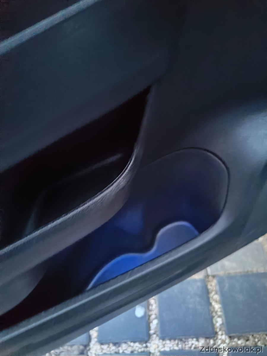 -Podświetlone na niebiesko schowki w drzwiach kierowcy i pasażera oraz doły drzwi.
