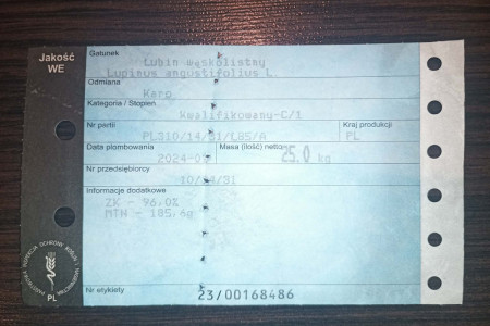 Sprzedam łubin gorzki karo. Duże ilości. Jest wyczyszczony i nadający się do siewu. Bez oprysku na dojrzewanie. Samokończący. Nie był randapowany!