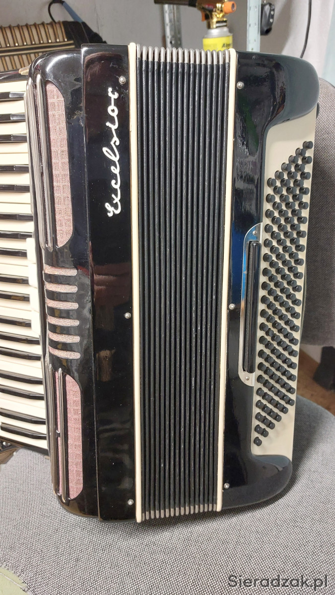 Sprzedam akordeon Excelsior 120 basów 3 chóry Instrument jest całkowicie sprawny dobra kompresja i ładny bez plam miech, dobre pasy i twardy futerał. Akordeon ma ładny ciepły głos 16,8,8. Zainteresowanych proszę o kontakt tel.