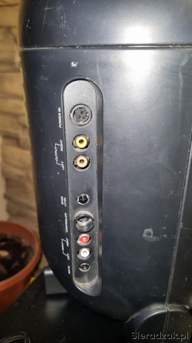 Zestaw sprawny w stanie jak na foto. Subwoofer z 2 satelitkami pilot na kablu remote control oraz zasilacz zastępczy Onkyo. Wszystko gra bardzo ąłdnie mocno. Mamy wejście cinche RCA i Aux tzw Mini Jack więc możemy podłączyć praktycznie wszystko - gramofon z wbudowanym przedwzmacniaczem lub odtwarzacz CD magnetofon telefon komputer PC laptop lub nawet odbiornik Bluetooth. Polecam.