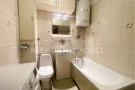 Łazienka wykończona glazurą i terakotą, ciepła woda z bojlera.