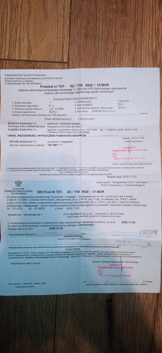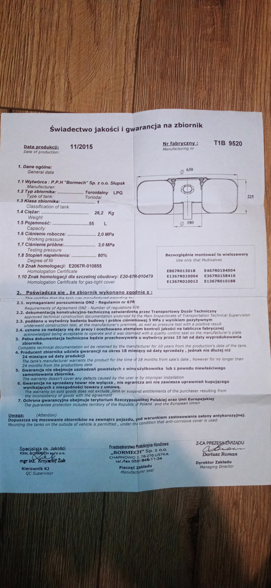 zbiornik LPG 55 l. z dokumentami.