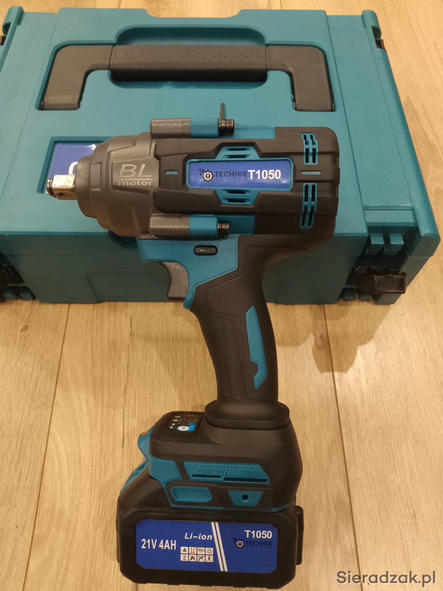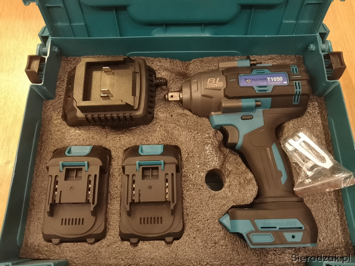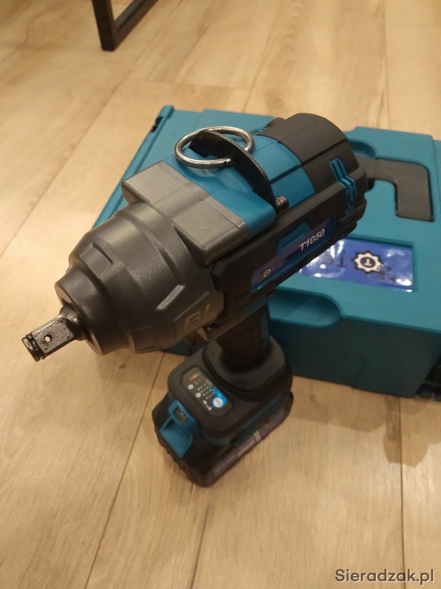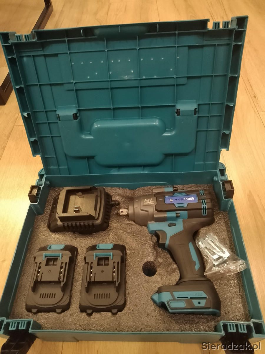 Sprzedam nowy klucz udarowy o mocy 1050nm z silnikiem bezszczotkowym, solidnie wykonany i mocny. W zestawie walizka, nasadki, 2x bateria i ładowarka. Konpatabilny z bateriami makita
